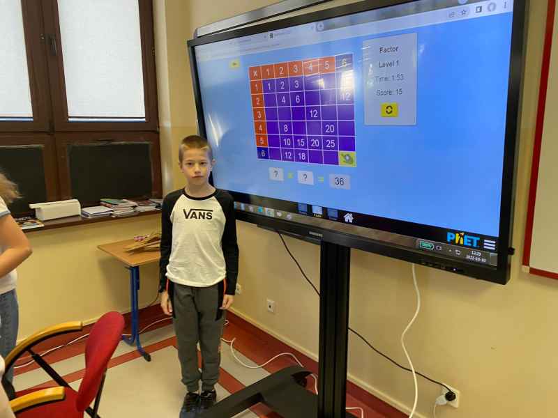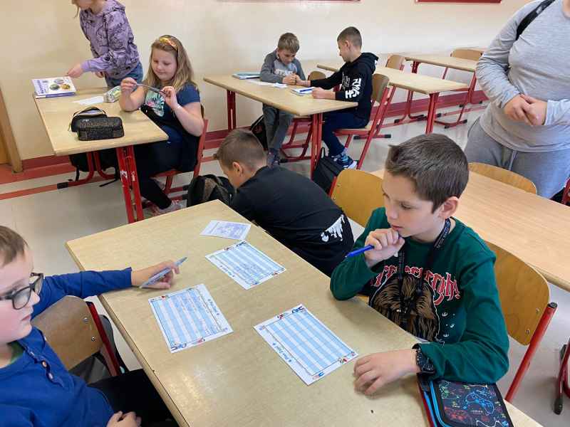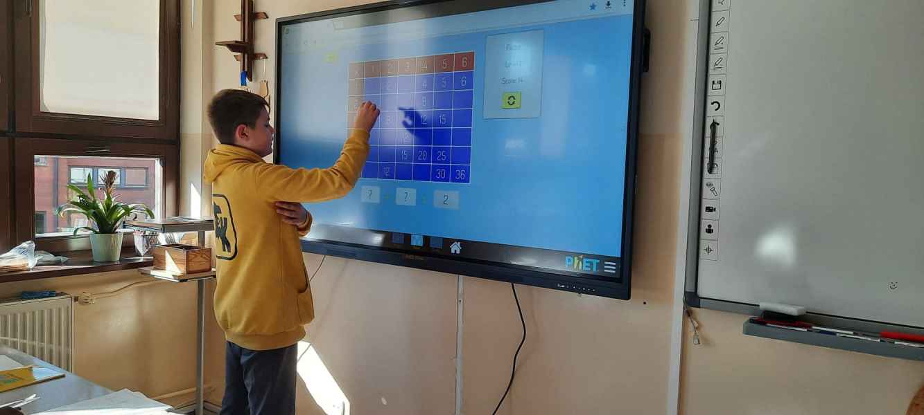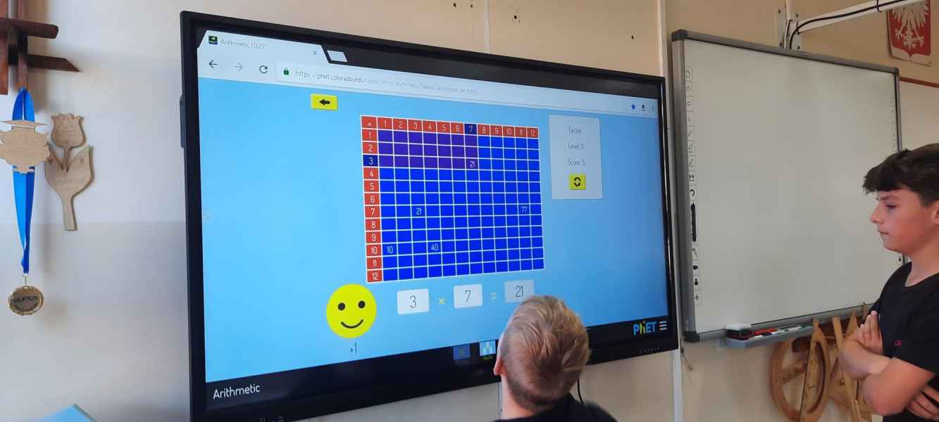 Przed każdą lekcją dzieci i młodzież była poddana próbie - nie mogli wejść do klasy, dopóki nie odpowiedzieli poprawnie na zadane pytanie związane właśnie z mnożeniem. Lekcje matematyki były wypełnione grą w bingo oraz interaktywnymi zabawami na czas. Dodatkowo słodki upominek czekał na każdego, kto na terenie szkoły znalazł plakat z przykładami mnożenia, poprawnie go rozwiązał, a następnie zrobił zdjęcie i znalazł nauczyciela matematyki z cukierkami. Dzieciom i młodzieży spodobała się opisana forma lekcji, która uatrakcyjniła zajęcia. W tym miesiącu czeka nas jeszcze Tydzień Kodowania. Beata Sauter i Katarzyna Nikrant.