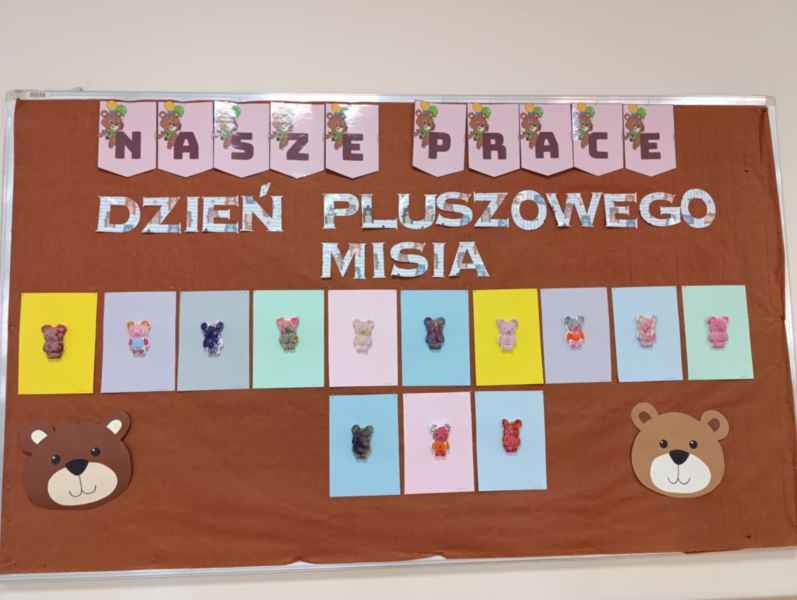 Małe, duże, pluszowe,kolorowe...MISIE opanowały salę oddziału 0d. Z okazji Dnia Misia zagościła u nas misiowa atmosfera. Było dużo zabawy, uśmiechu,ale i pracy. Wykonaliśmy prace plastyczne, wysłuchaliśmy opowiadania o niedźwiadku. Zostaliśmy również zaproszeni do Bilblioteki Motyli na Misiowe warsztaty- było ciekawie! Bardzo dziękujemy.