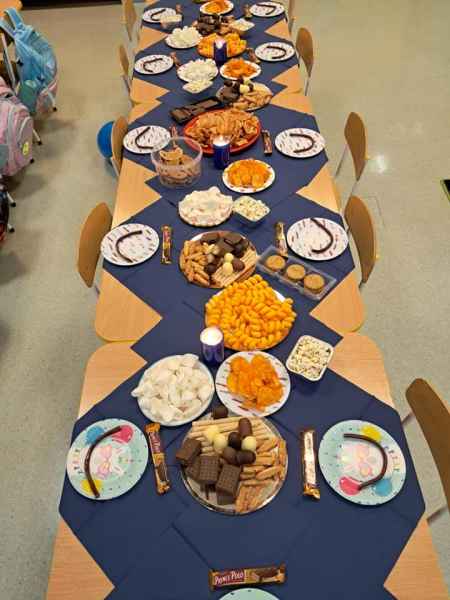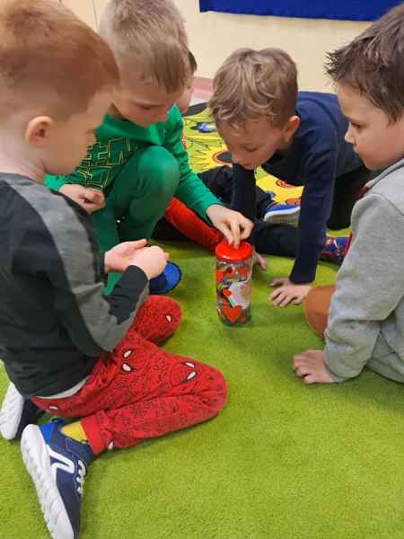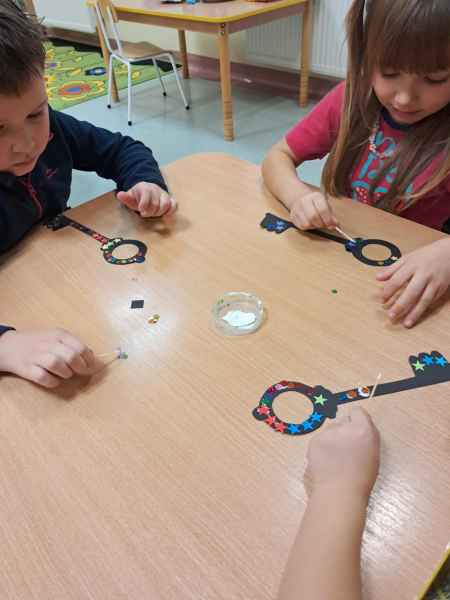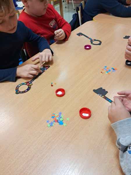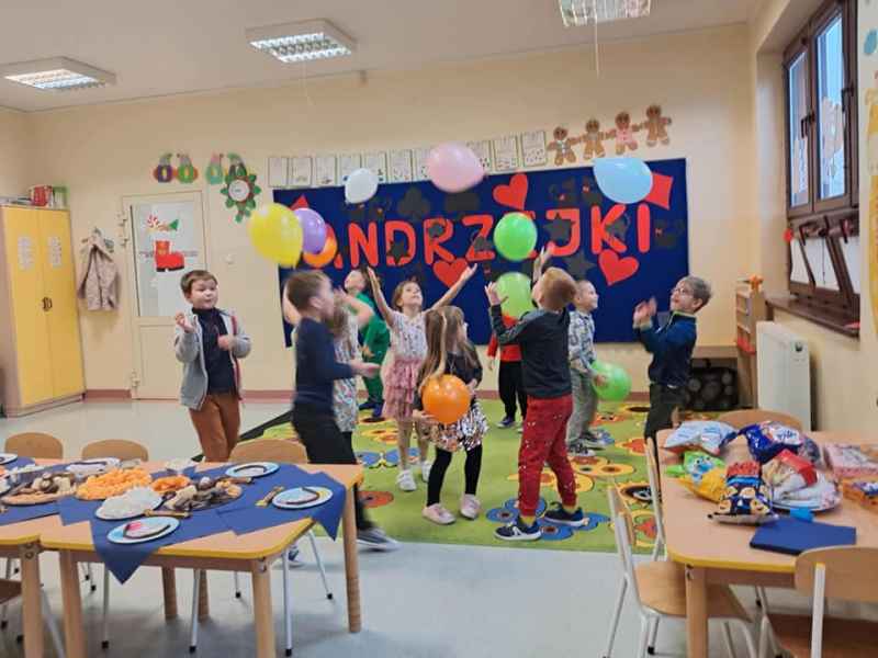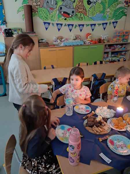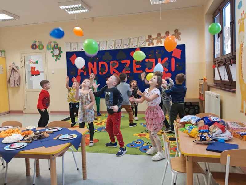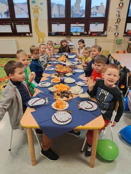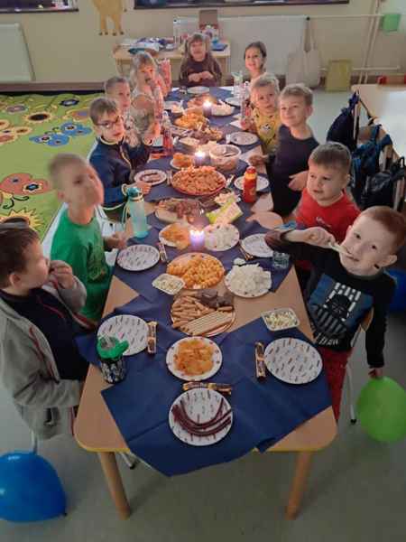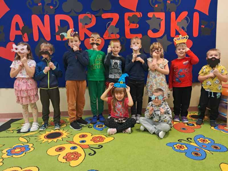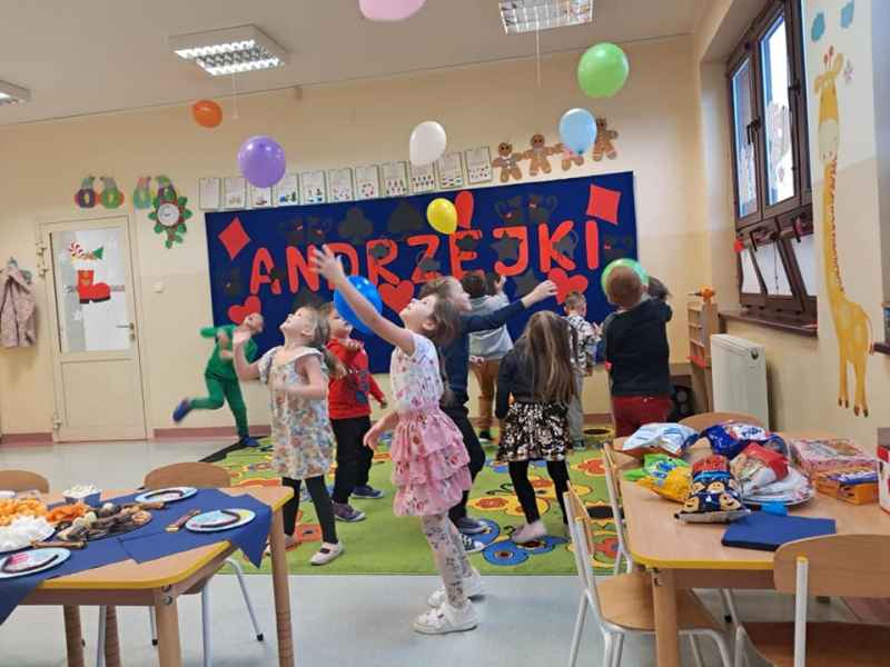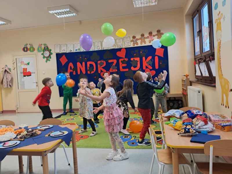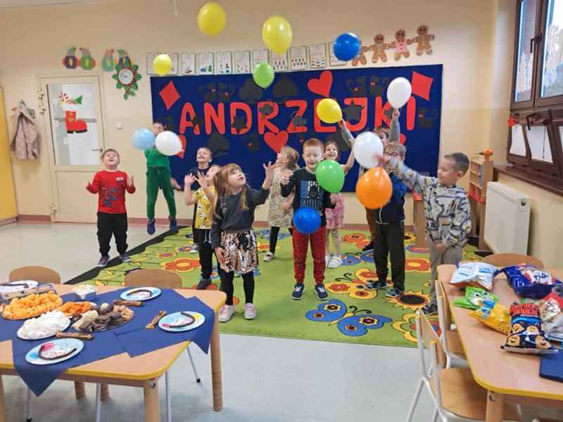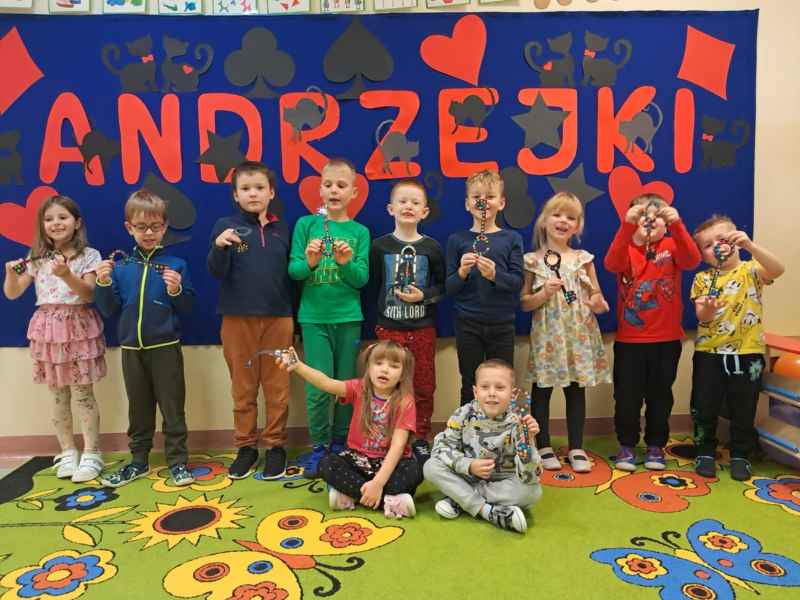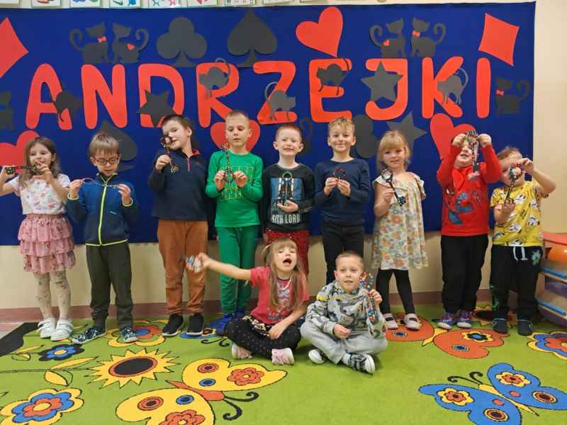 Dzieci z grupy 0a Dzień Andrzejek spędziły na wspólnych zabawach. Wykonali magiczny klucz, który otwiera drzwi do świata baśni i magii. Natomiast stół pełen smakołyków okazał się mieć największą siłę, przyciągał przedszkolaki i uszczęśliwiał. Dziękujemy za wspólną zabawę.