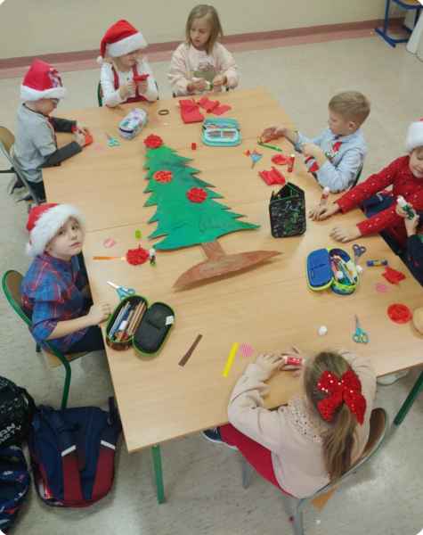 Uczniowie klasy 1C wspólnie wykonali piękne, tekturowe, choinki świąteczne. W procesie twórczym nie brakowało zaangażowania, kreatywności i świetnej zabawy! Dzięki wspólnym wysiłkom powstały wyjątkowe dekoracje, które będą zdobić naszą salę lekcyjną, w czasie oczekiwania na Święta Bożego Narodzenia.