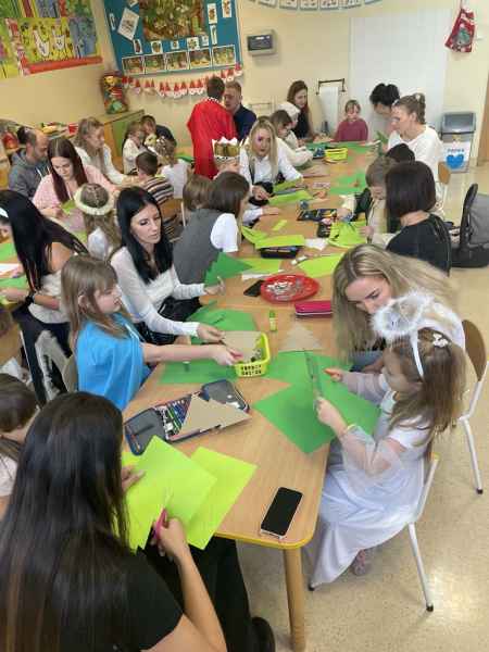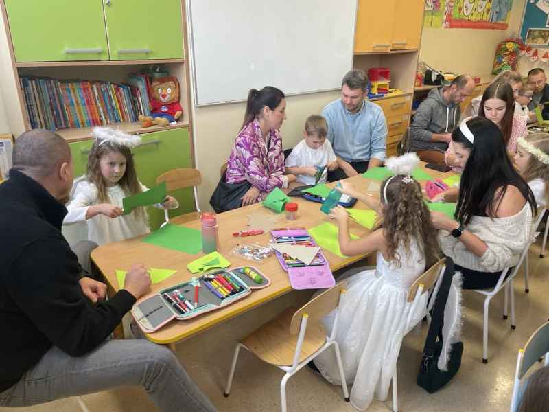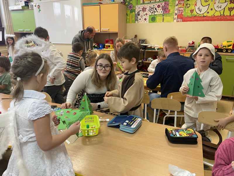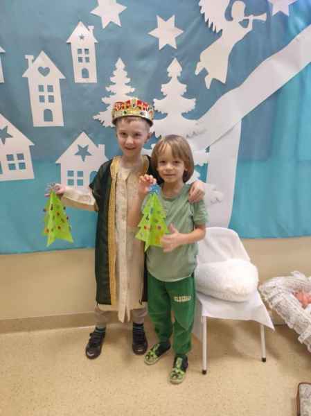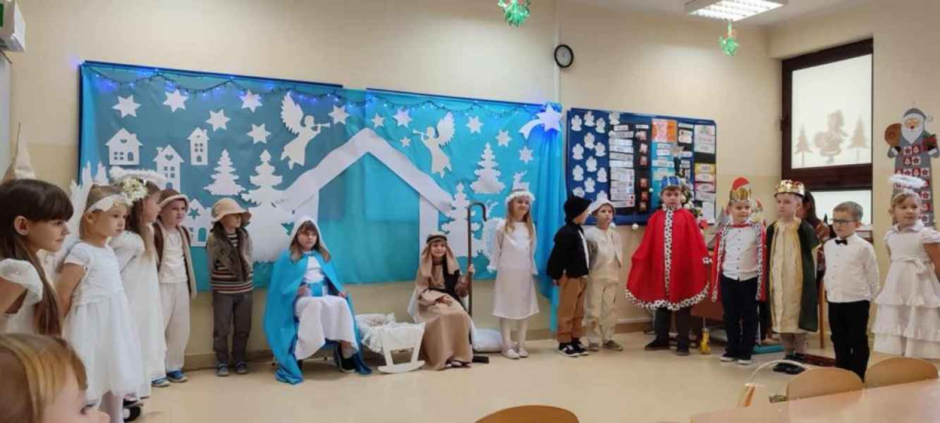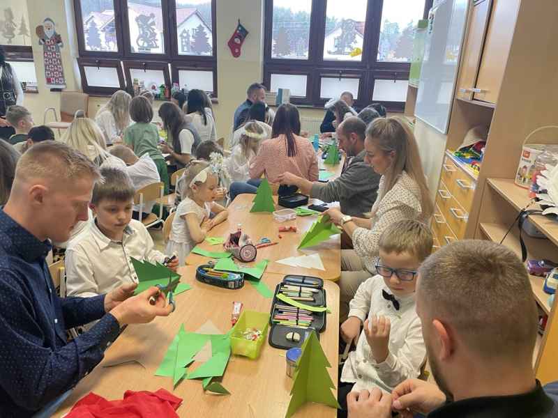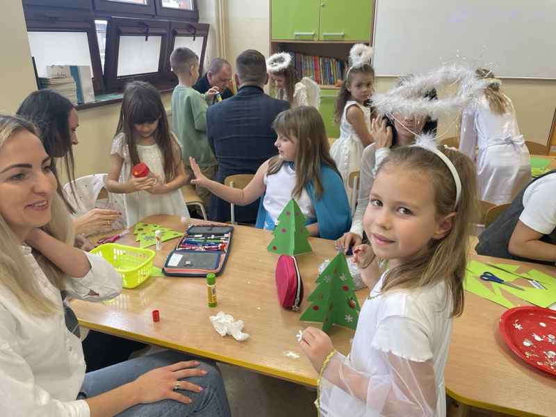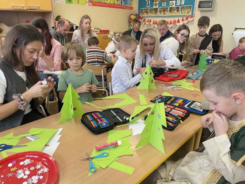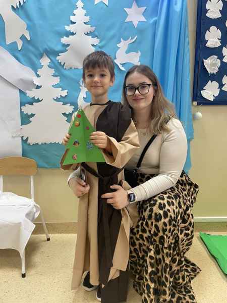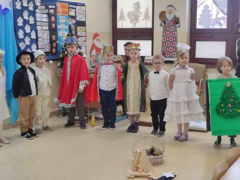 W środę, 18 grudnia dzieci z oddziału 0b wprowadziły swoich rodziców w świąteczny nastrój podczas występu jasełkowego. Następnie razem z rodzicem wzięły udział w zajęciach plastycznych, podczas których wspólnie wykonali papierowe choineczki ozdobione mnóstwem kolorów.
