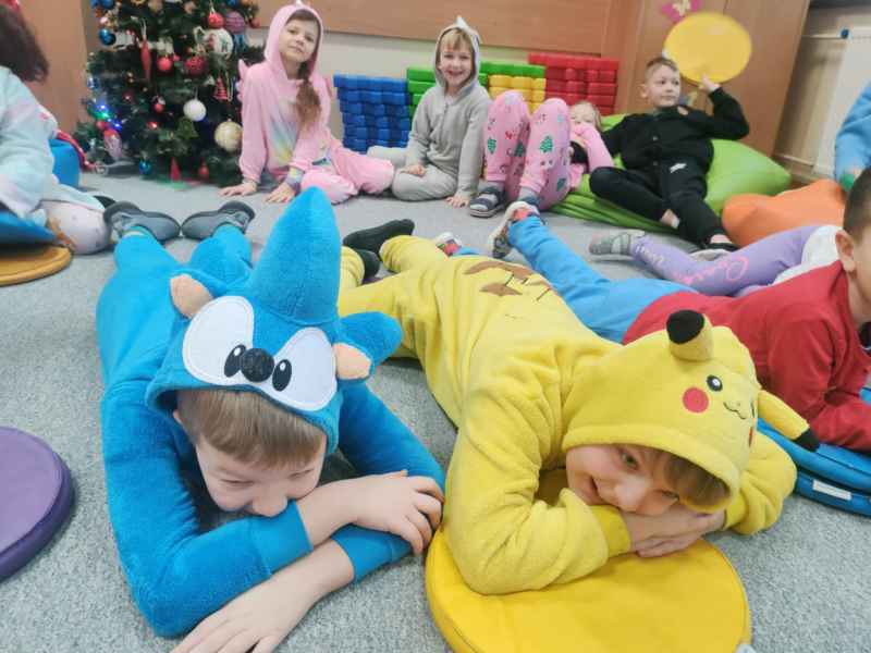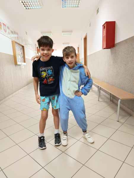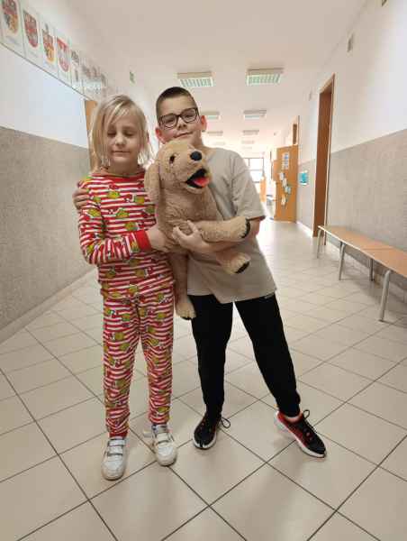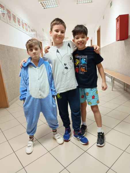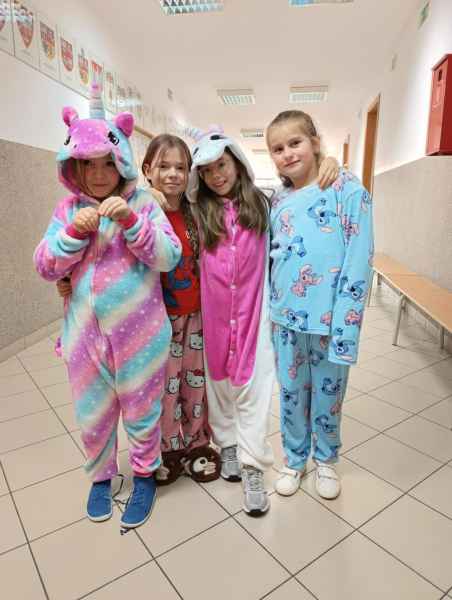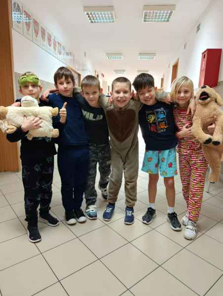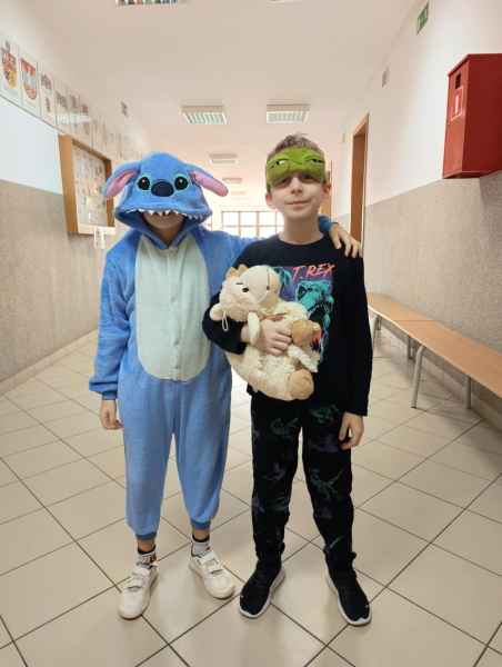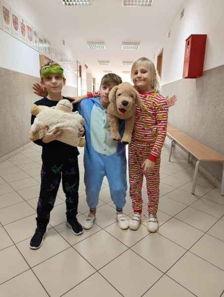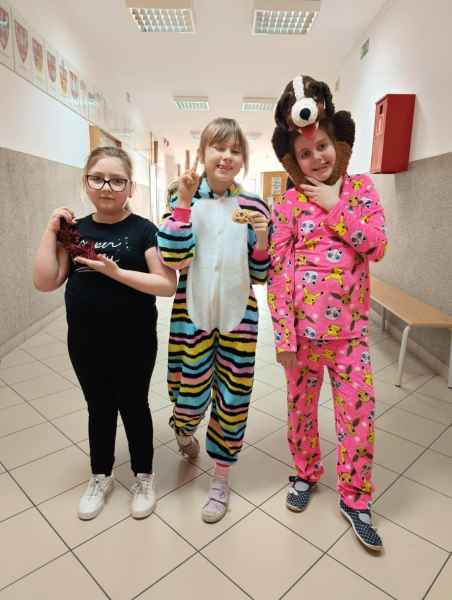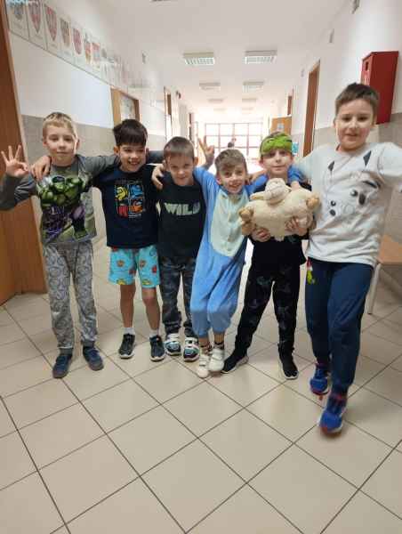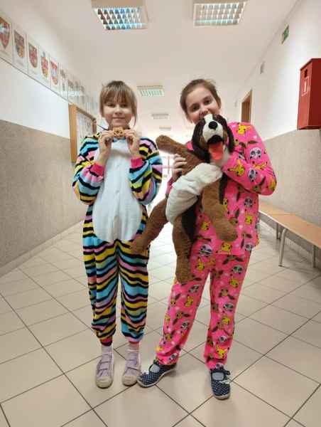 16 stycznia uczniowie naszej szkoły spędzili dzień w niecodziennej, przemiłej atmosferze. Powodem tej radości, zadowolenia i uśmiechu na twarzy był zorganizowany przez Samorząd Uczniowski Dzień Piżamy. Tego dnia większość uczniów, pojawiła się w szkole w piżamach. Na szkolnych korytarzach można było spotkać dzieci w kombinezonach piżamowych. Były pokemony, misie, super bohaterowie i wiele innych postaci z krainy bajek. Dzieci założyły swoje miękkie kapcie, kolorowe piżamy i ciepłe szlafroki.