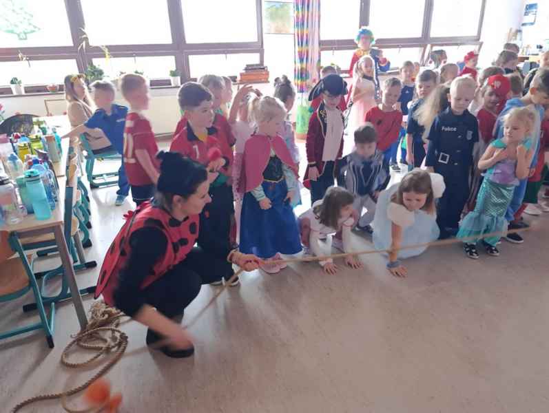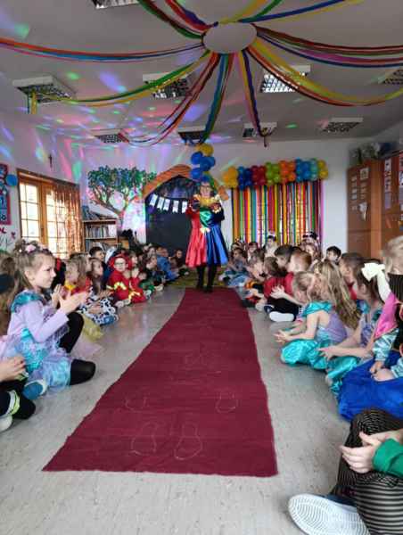 Karnawał to miła tradycja przepełniona muzyką i zabawą. 22 stycznia w naszej szkole odbył się bal karnawałowy dla Oddziałów Przedszkolnych. Dzieci wcieliły się w różne postacie z bajek...Nie sposób wymienić wszystkich, ale zobaczyć można było między innymi królewny, księżniczki, wróżki, piratów, strażaków. Przebierańcy świetnie bawili się, uczestnicząc we wspólnych zabawach, a skoczna i rytmiczna muzyka zachęcała do tańca. Był to czas pełen uśmiechu, radości, który dostarczył wszystkim niezapomnianych wrażeń. Serdecznie dziękujemy Pani Aleksandrze Hazuce za zaproszenie na tak wspaniałą zabawę!
