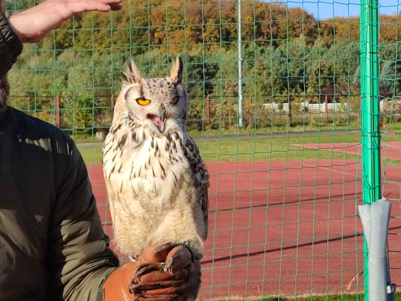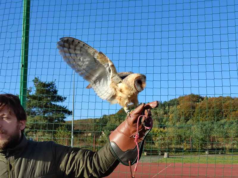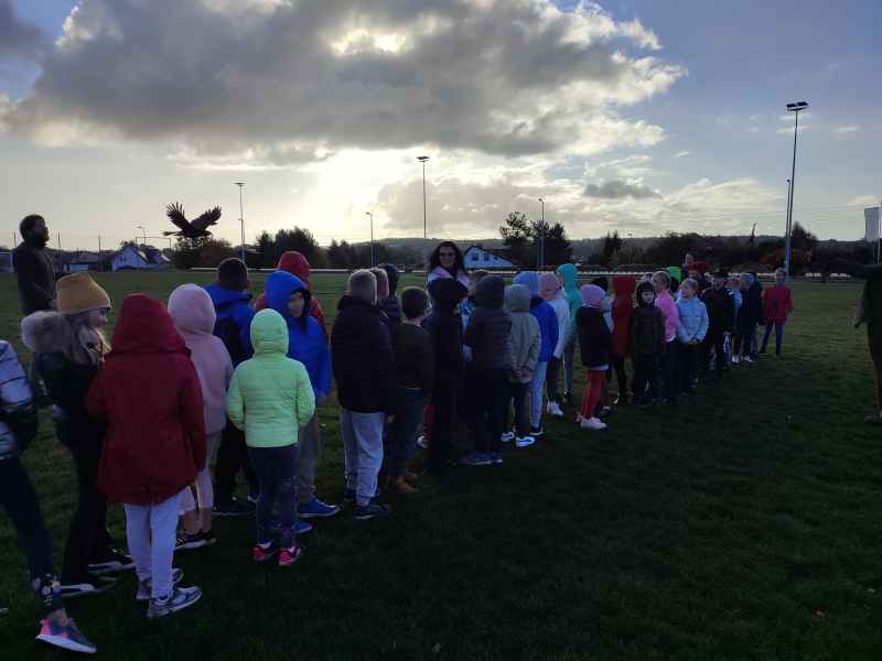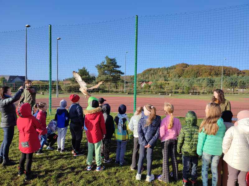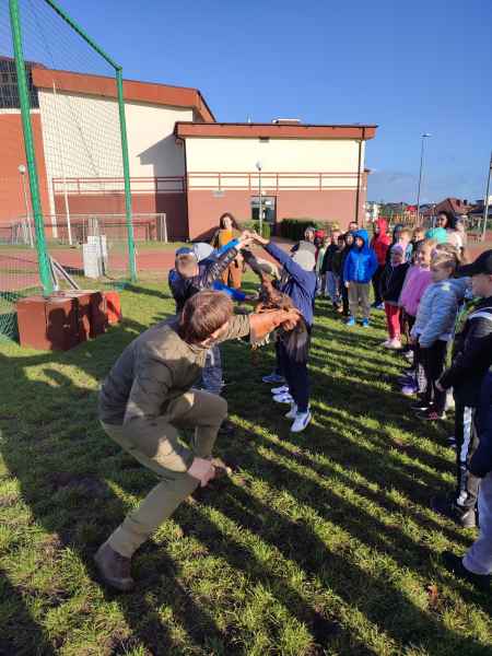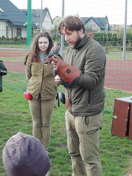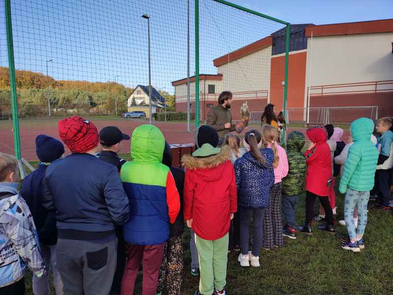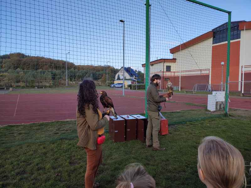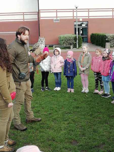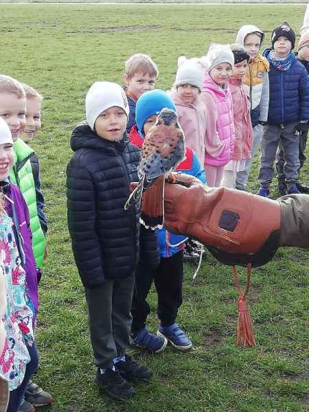 Sokolnik opowiedział o warunkach życia, zwyczajach, potrzebach i metodach polowania tych ptaków. Uczniowie mieli też okazję zobaczyć wybrane gatunki, podziwiając je nie tylko podczas odpoczynku, ale także w locie. Na zakończenie każde dziecko mogło "potrzymać" na ręce wybranego ptaka i zrobić sobie z nim zdjęcie.
