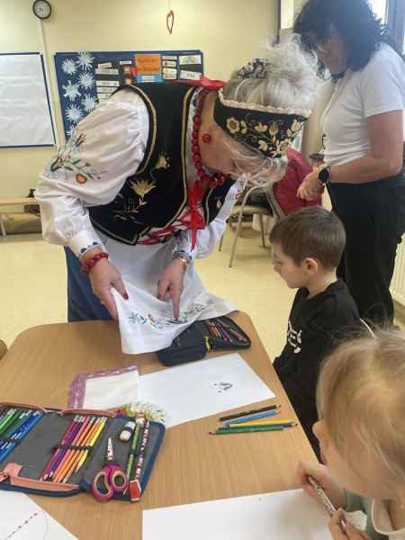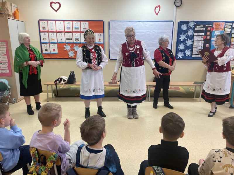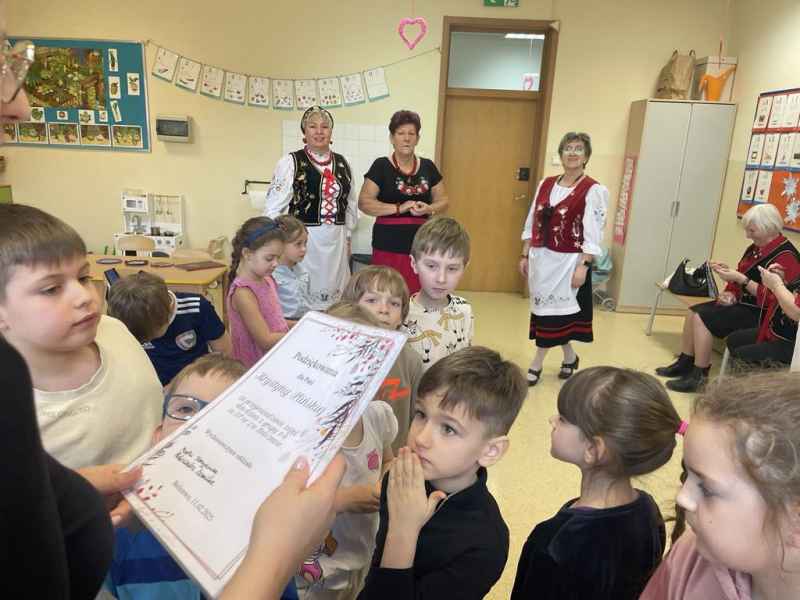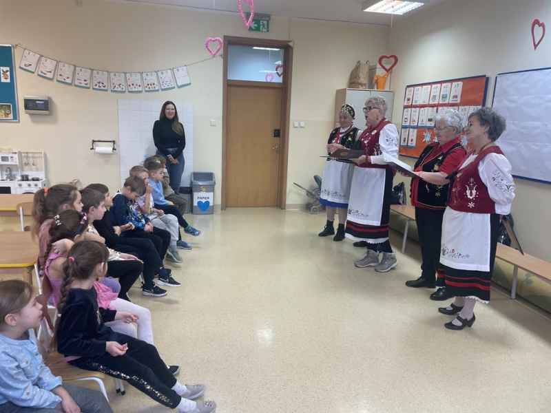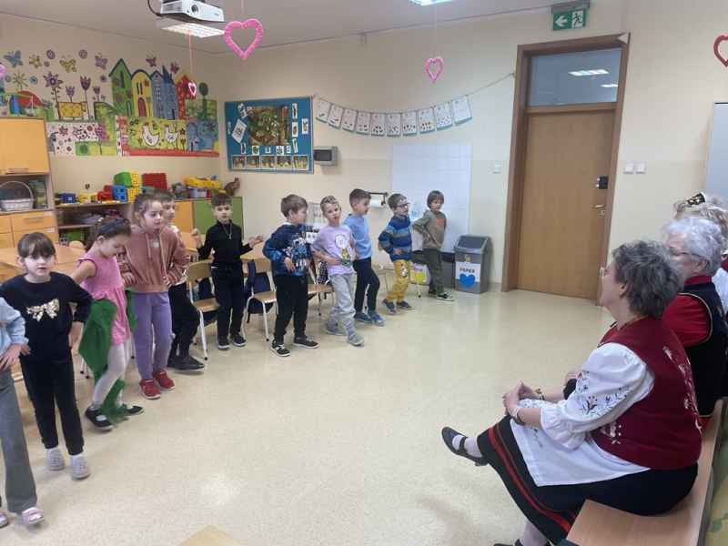 W dniu 11.02.2025 gościliśmy w naszej grupie panią Grażynę Groth, Janinę Daszke, Krystynę Plińską, Terenię Majkowską, Terenię Kupską oraz Ludwikę Śliwicką. Panie zaznajomiły dzieci