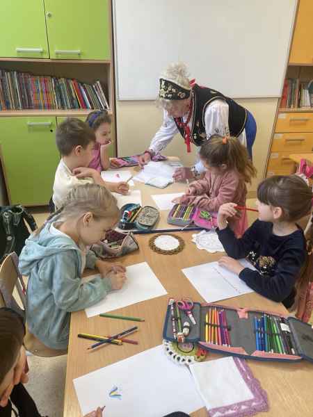 z elementami kultury kaszubskiej, tj. stroje, flaga, herb, symboliczne znaczenie kolorów na haftach kaszubskich, pieśni kaszubskie oraz język kaszubski. Dzieci stawiały pierwsze kroki w szydełkowaniu