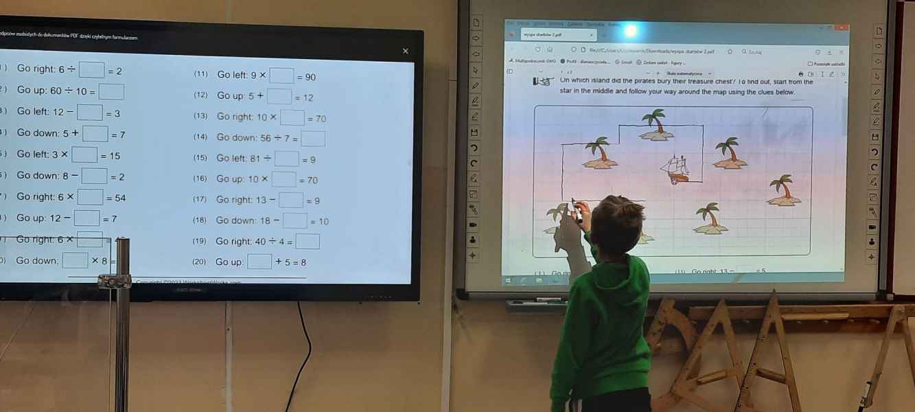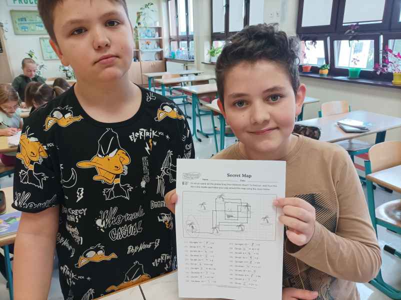 Uczniowie klas IV – VIII naszej szkoły również pod opieką nauczycieli matematyki mieli okazję stać się odkrywcami zakodowanych informacji, między innymi: kierując się wskazówkami kierunkowymi w języku angielskim, szukali, na jakiej wyspie ukryto skarb, przechodzili przez labirynty działań, odkrywali rozsypane pojęcia matematyczne oraz tworzyli kody QR pod którymi ukryła się niespodzianka. Uśmiechy na twarzach, zaangażowanie i skupienie podczas poszukiwań to efekt dobrej zabawy z kodowaniem.