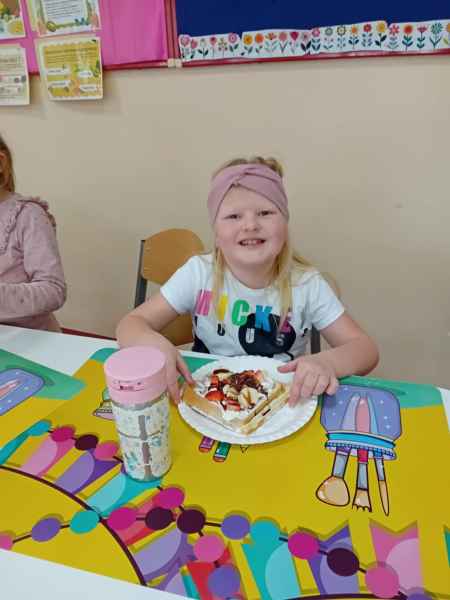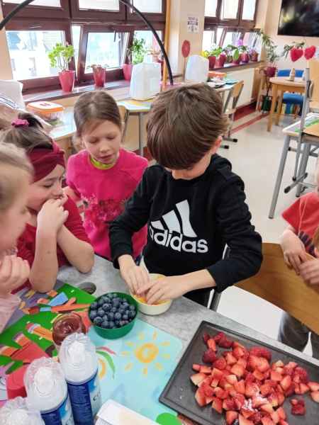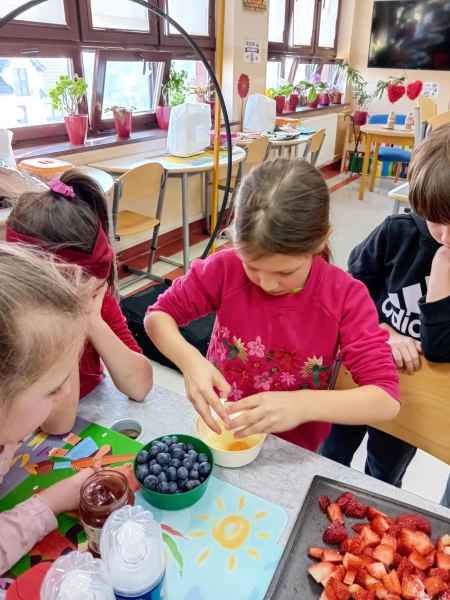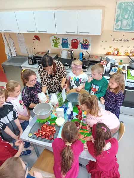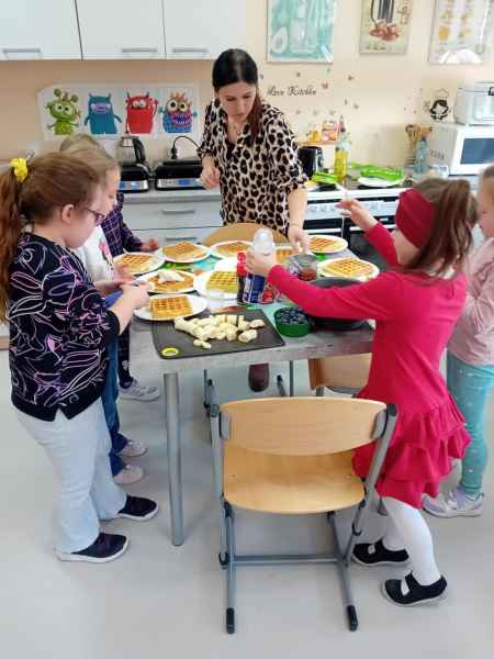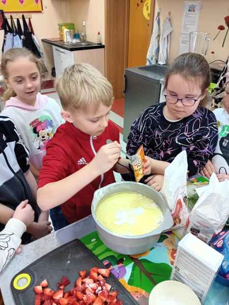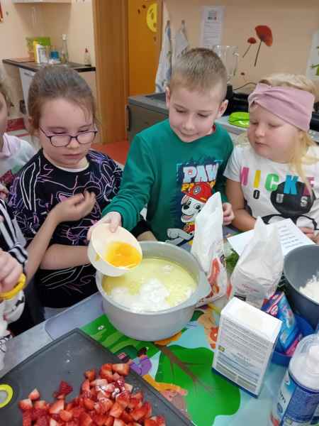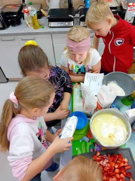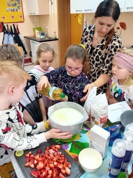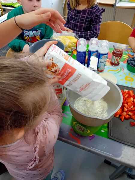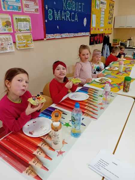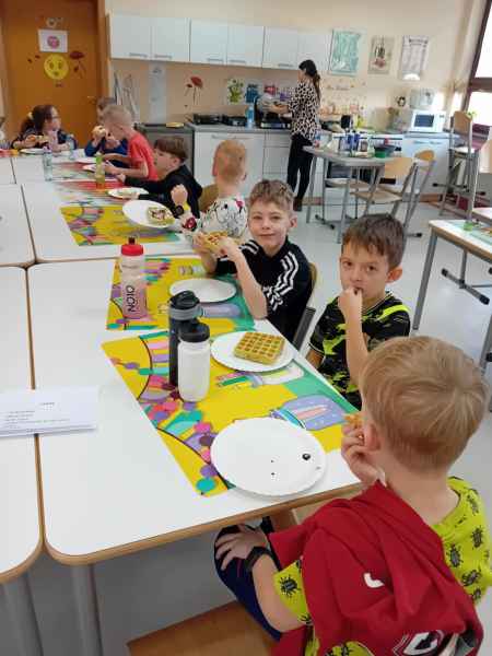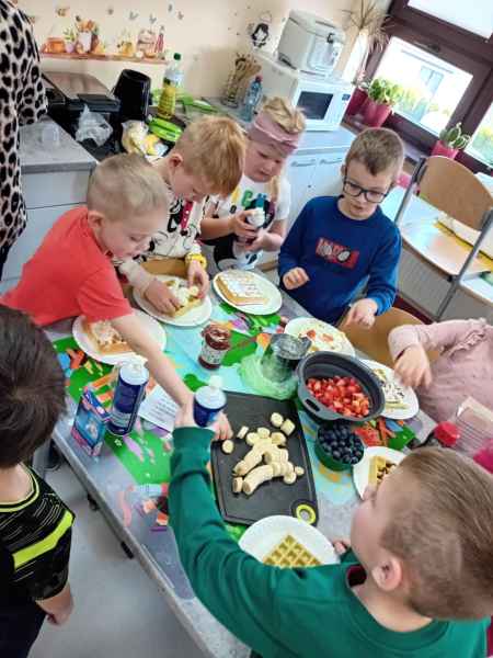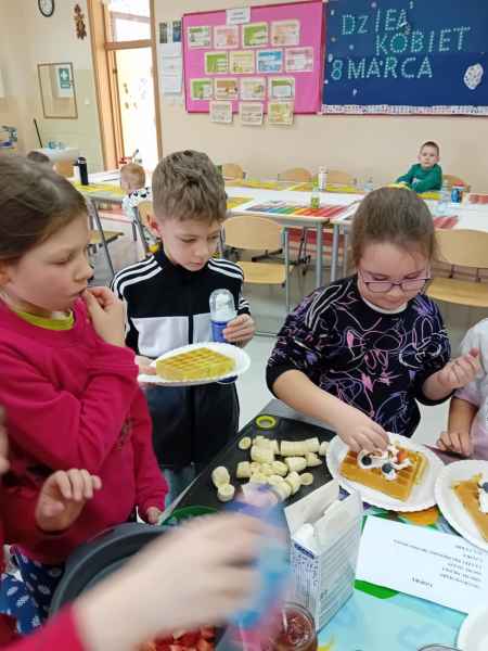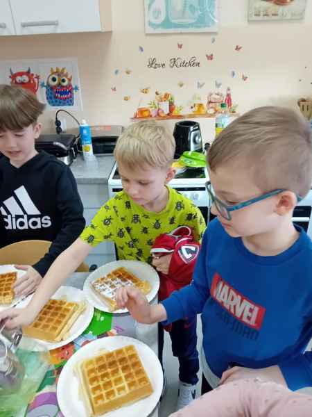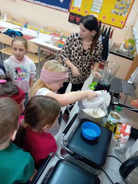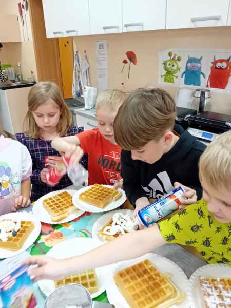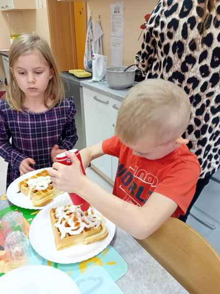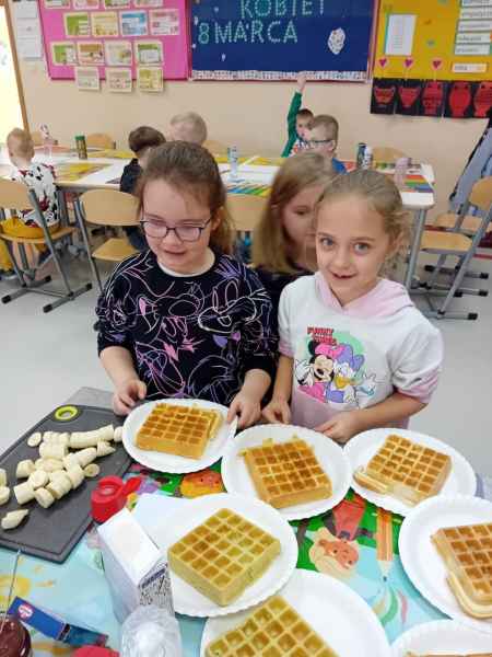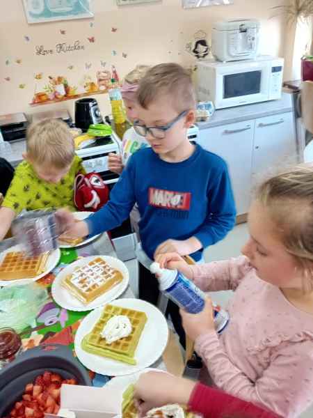 Z okazji Dnia Kobiet i Dnia Mężczyzn 1b brała udział w warsztatach kulinarnych. Dzieci zrobiły razem Hulkowe Gofry, czyli z dodatkiem zdrowego szpinaku. Dziękujemy za pomoc i zaangażowanie Pani Dominiki Bettin która wszystko pięknie przygotowała. Wszyscy delektowali się pysznymi goframi.