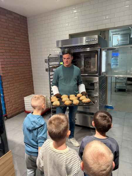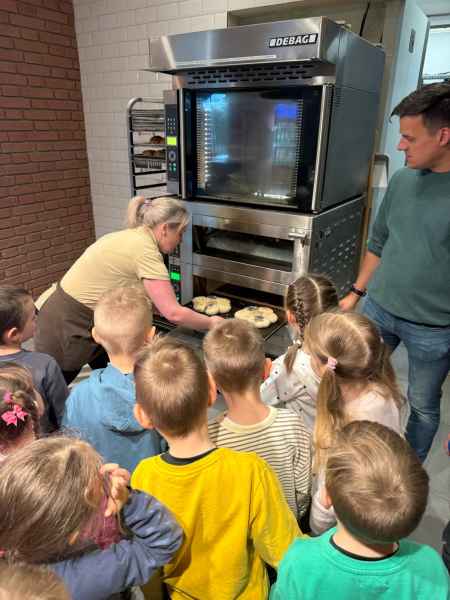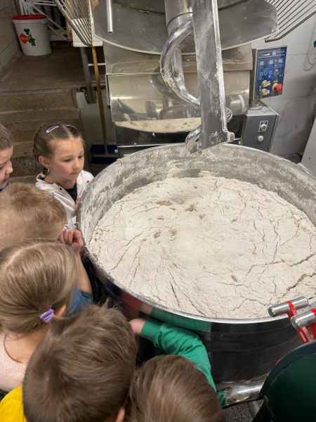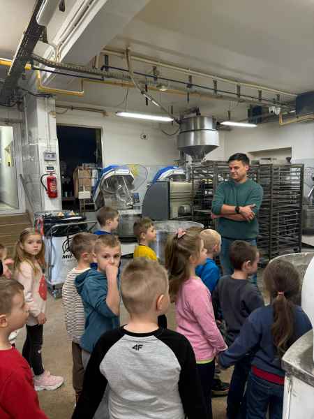 15 marca obchodzimy Dzień Piekarzy i Cukierników, z tej okazji klasa „0c” odwiedziła dzisiaj lokalną piekarnię „Lange” Była to świetna okazja aby dzieci mogły zobaczyć jak powstaje chleb i inne wypieki. Oglądanie składników, obserwowanie procesu wyrabiania ciasta oraz podglądanie jak pieczywo trafia do pieca to cenne informacje dla każdego z nas. Teraz już wiemy jak ciężka i ważna jest praca piekarza. Do szkoły wróciliśmy zadowoleni i pełni wrażeń. Serdecznie dziękujemy właścicielom oraz pracownikom piekarni za okazaną gościnność i bardzo miłą atmosferę.