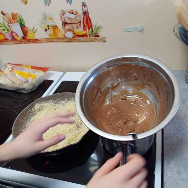 W miniony czwartek uczniowie klas 4d i 5c mieli przyjemność uczestniczyć w kolejnych zajęciach kulinarnych, które odbyły się w Laboratorium Przyszłości. Po sukcesie poprzednich warsztatów pod okiem pani Bożeny Reszke, dzieci z radością podjęły nowe kulinarne wyzwania i przygody. Podczas tych zajęć uczniowie zgłębiali tajniki nowoczesnych technik kulinarnych oraz eksperymentowali z różnorodnymi składnikami. Dzięki specjalistycznemu sprzętowi dostępnym w Laboratorium Przyszłości, mogli korzystać z innowacyjnych narzędzi, co wzbogaciło ich doświadczenie kulinarne. Uczniowie mieli również okazję posługiwać się bezpiecznie piekarnikiem oraz kuchenką elektryczną, co pozwoliło im na naukę odpowiednich zasad bezpieczeństwa w kuchni.