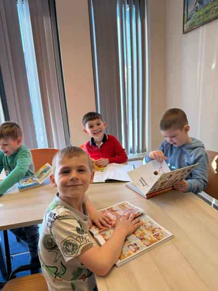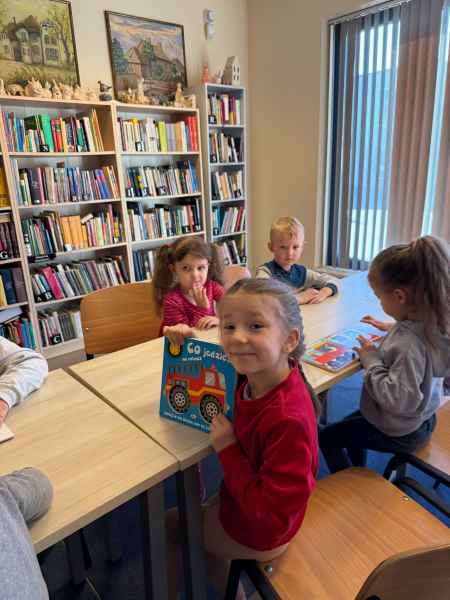W ubiegły piątek klasa „0c” wybrała się z wizytą do Publicznej Biblioteki w Bolszewie. Celem spotkania było przede wszystkim rozbudzanie miłości do książek, wzmacnianie nawyku słuchania i uważności, a także poznanie biblioteki jako miejsca pełnego przygód i wiedzy. Dzieci podczas warsztatów miały okazję rozwijać wyobraźnię, poszerzać słownictwo i przekonać się, że czytanie może być wspaniałą zabawą! I – co najważniejsze – wiele z nich zadeklarowało, że wróci do biblioteki… z własną kartą czytelnika! Dziękujemy za wspólnie spędzony czas!