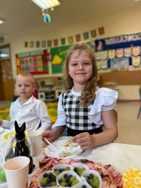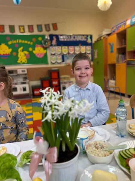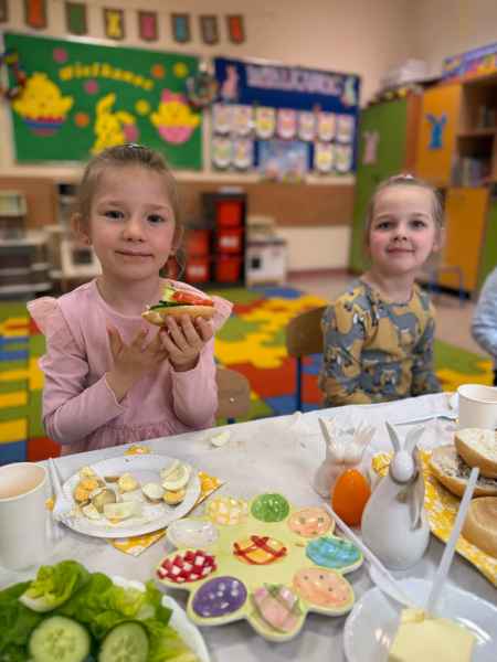 Dziś w naszej sali odbyło się uroczyste śniadanie wielkanocne, pełne radości, kolorowych pisanek i tradycyjnych smakołyków. Dzieci poznały wielkanocne zwyczaje, dzieliły się jajkiem i składały sobie życzenia.