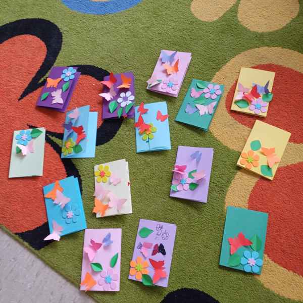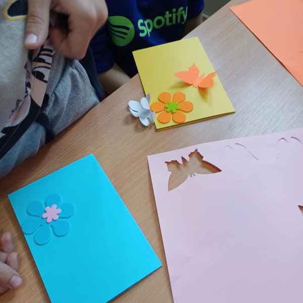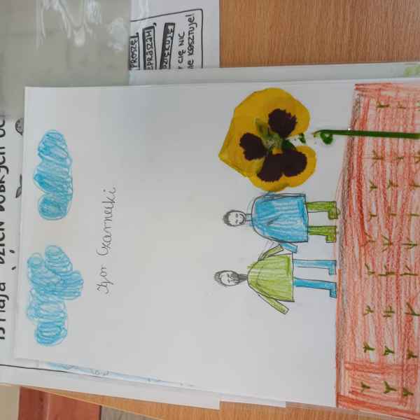 Z kolei uczniowie klasy 1b wykonali własnoręcznie kartki okolicznościowe dla swoich rodziców, w których zapisali nie tylko życzenia, ale także postanowienia i słowa wdzięczności. Był to wyraz szacunku oraz chęci okazania miłości i troski najbliższym.