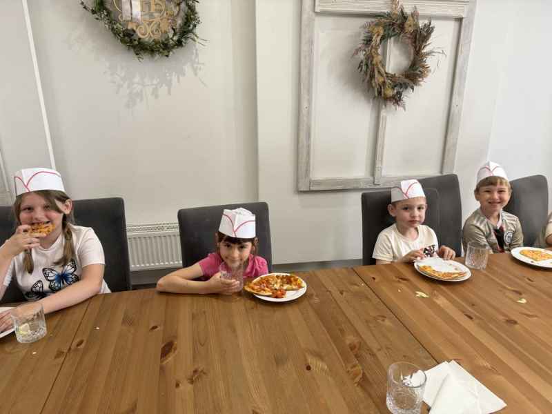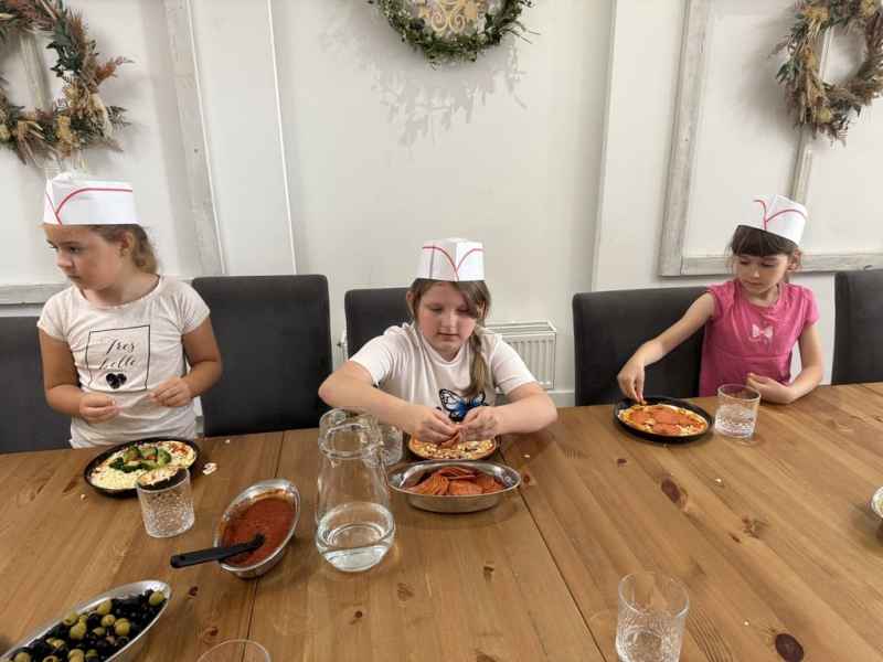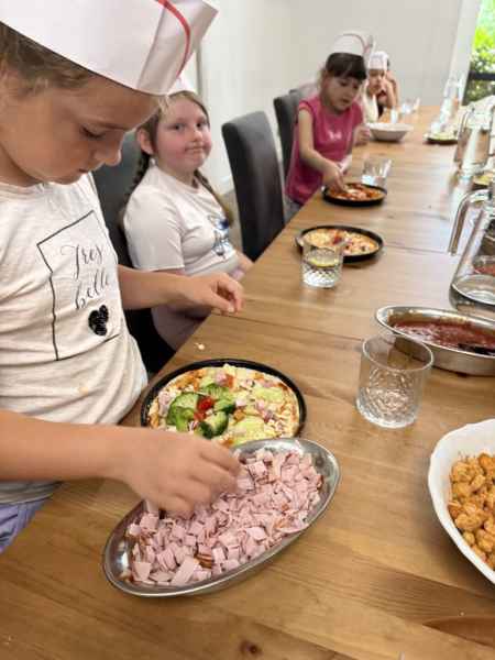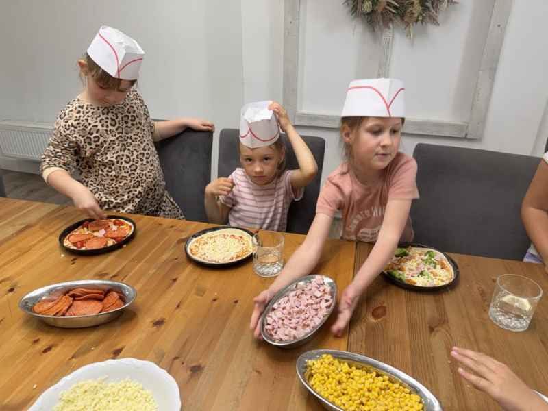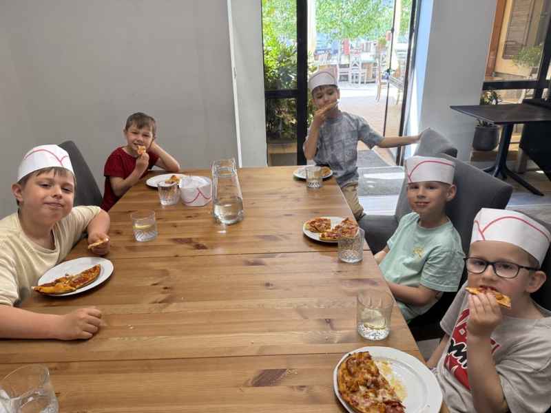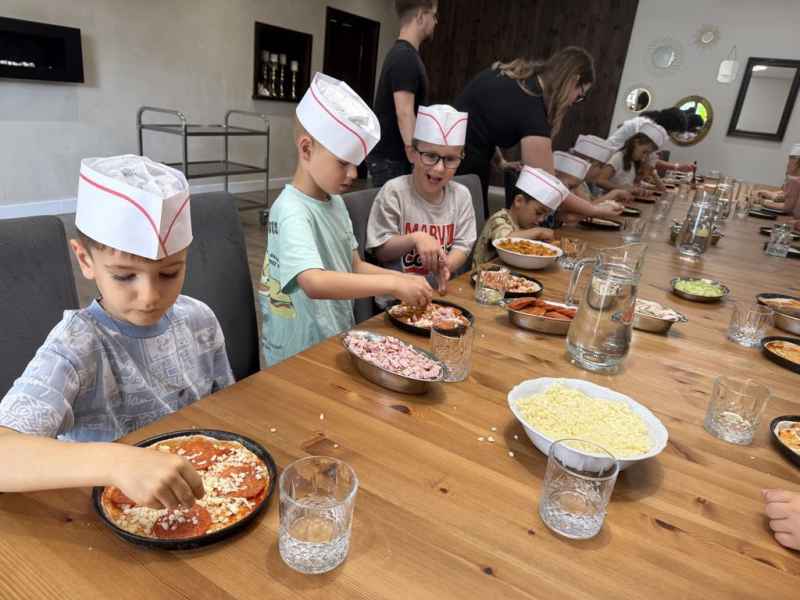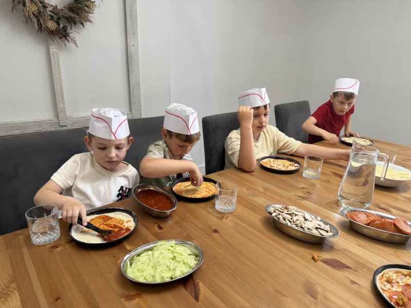 Dzieci samodzielnie skomponowały swoją wyjątkową pizzę. Wszyscy zajadali się ze smakiem, a w specjalnych czapeczkach wyglądali jak prawdziwi kucharze!