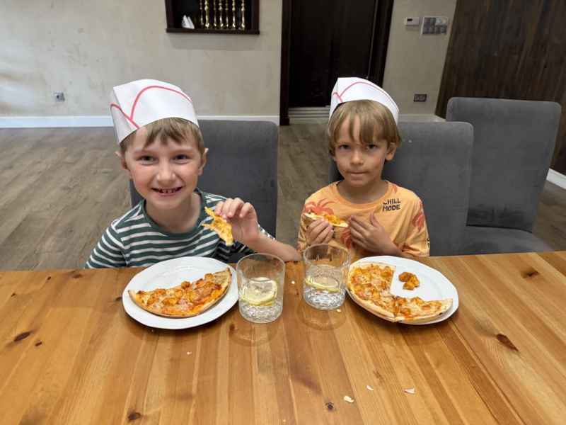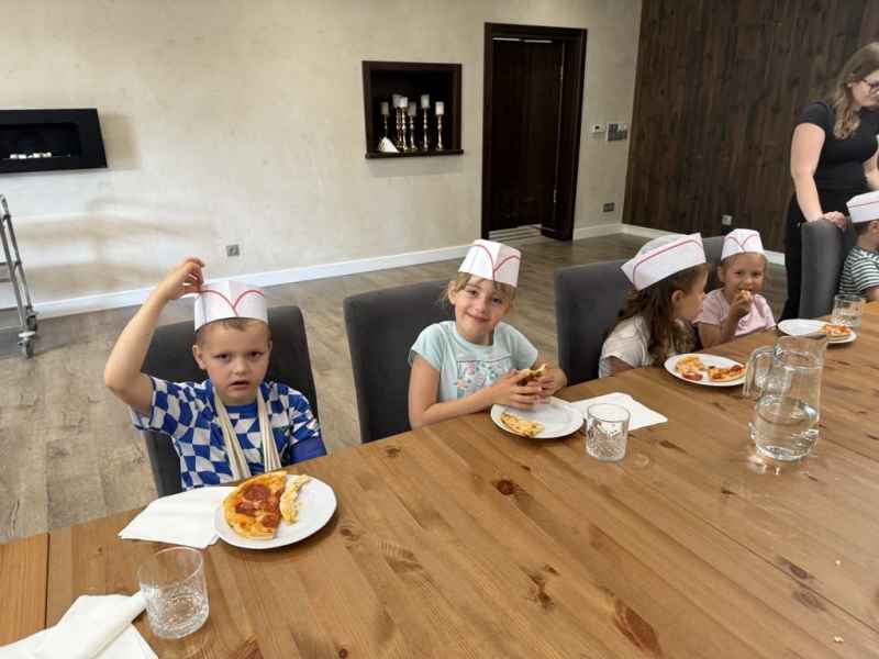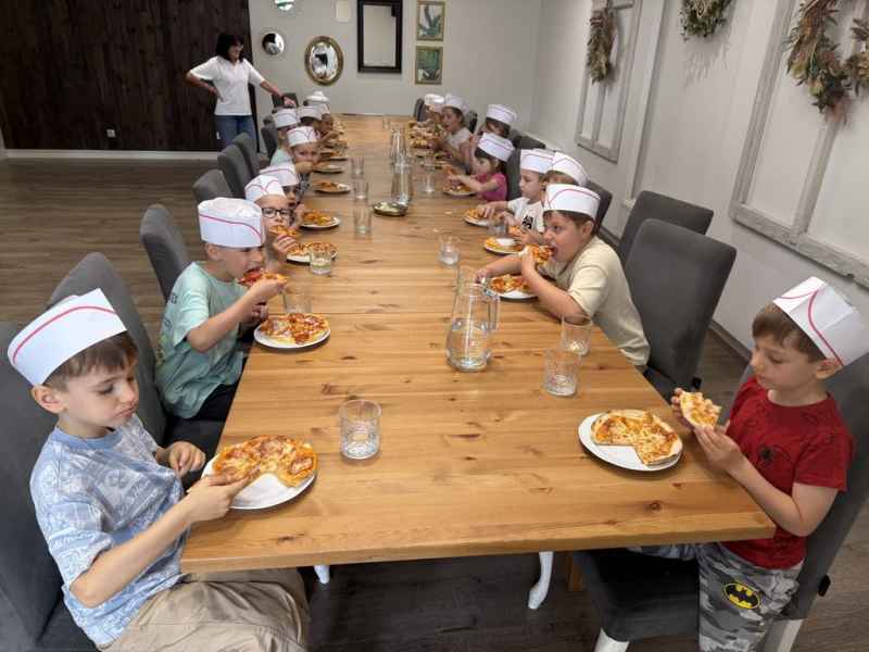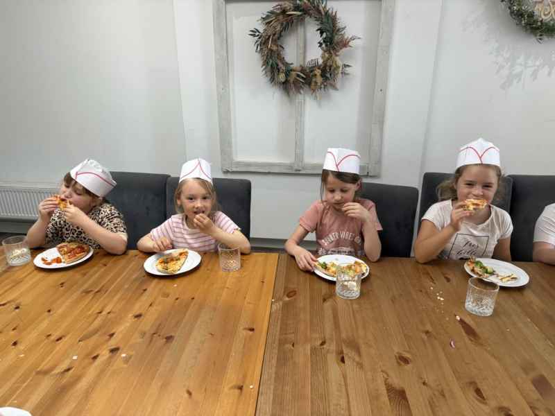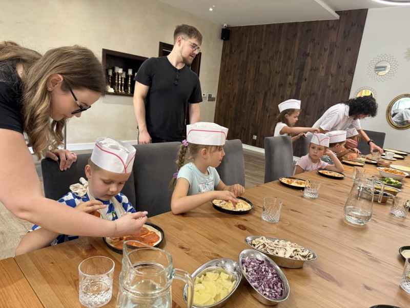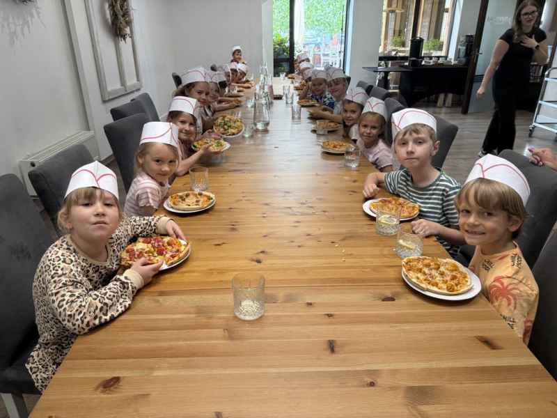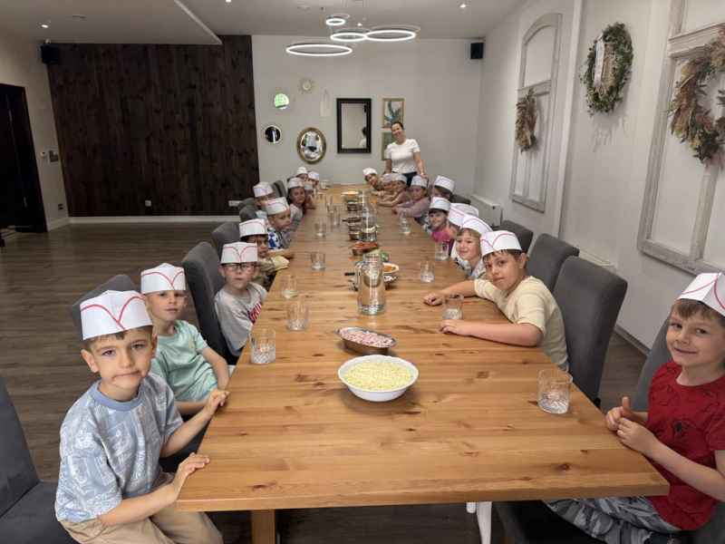 Dzieci samodzielnie skomponowały swoją wyjątkową pizzę. Wszyscy zajadali się ze smakiem, a w specjalnych czapeczkach wyglądali jak prawdziwi kucharze!