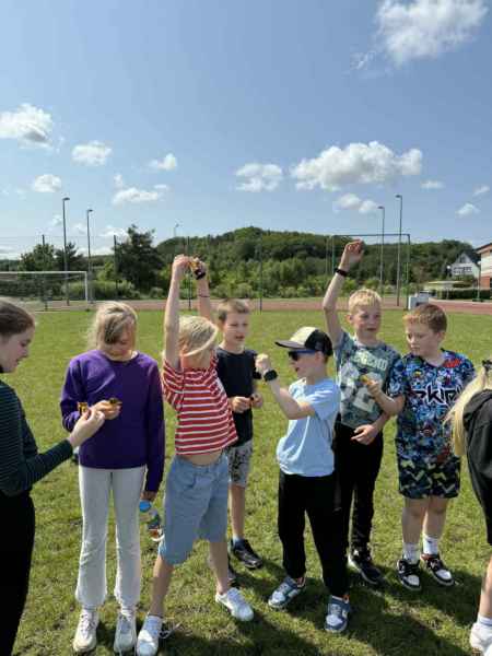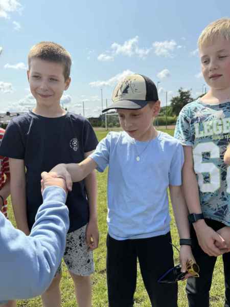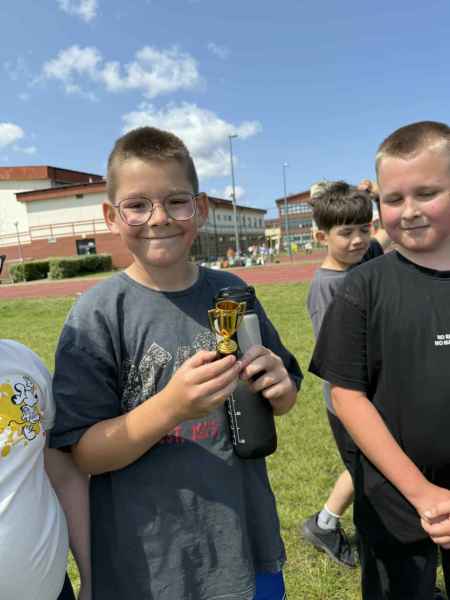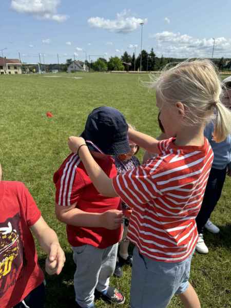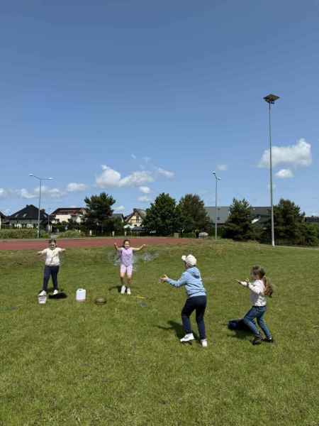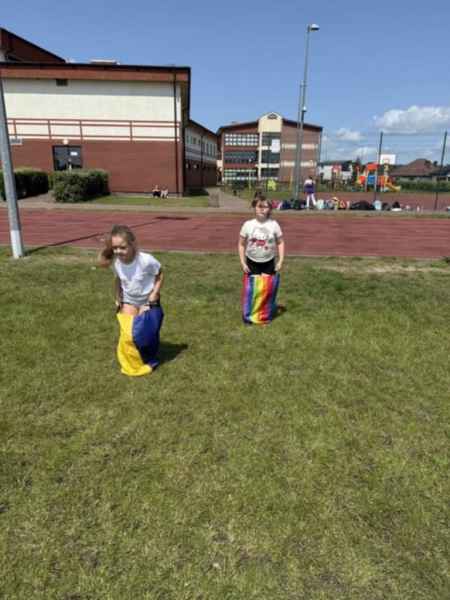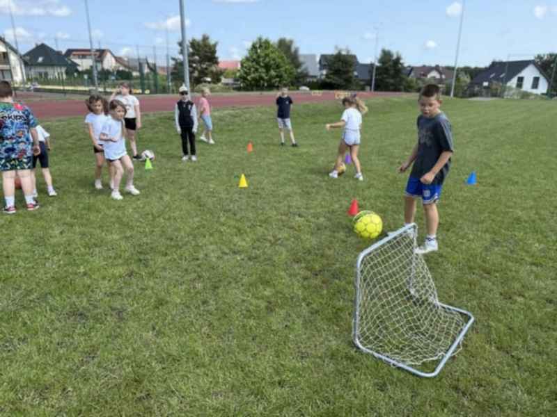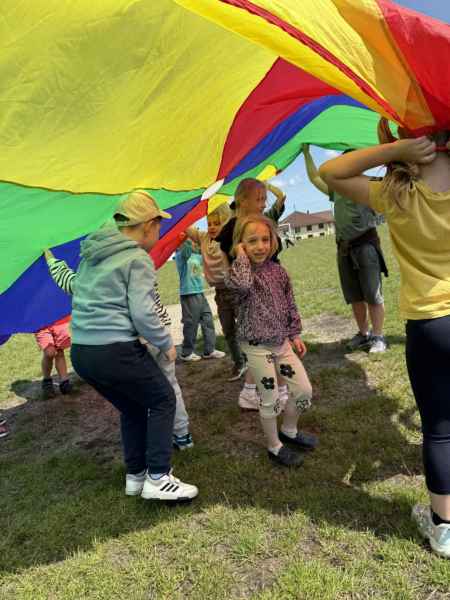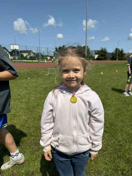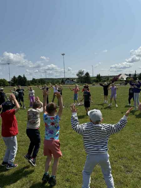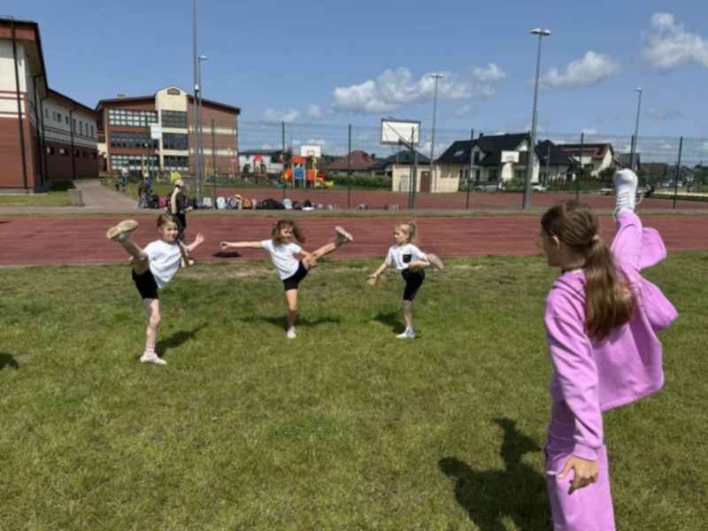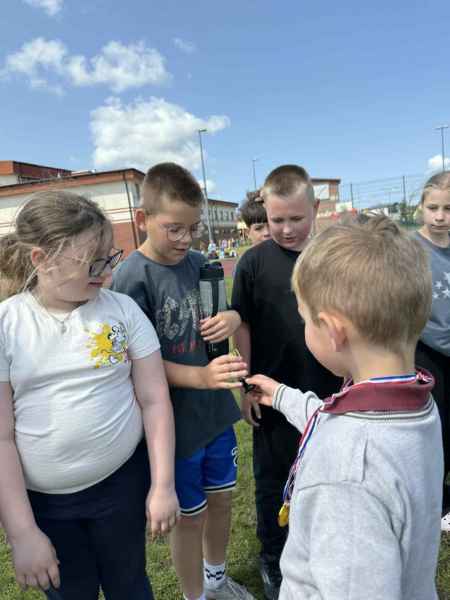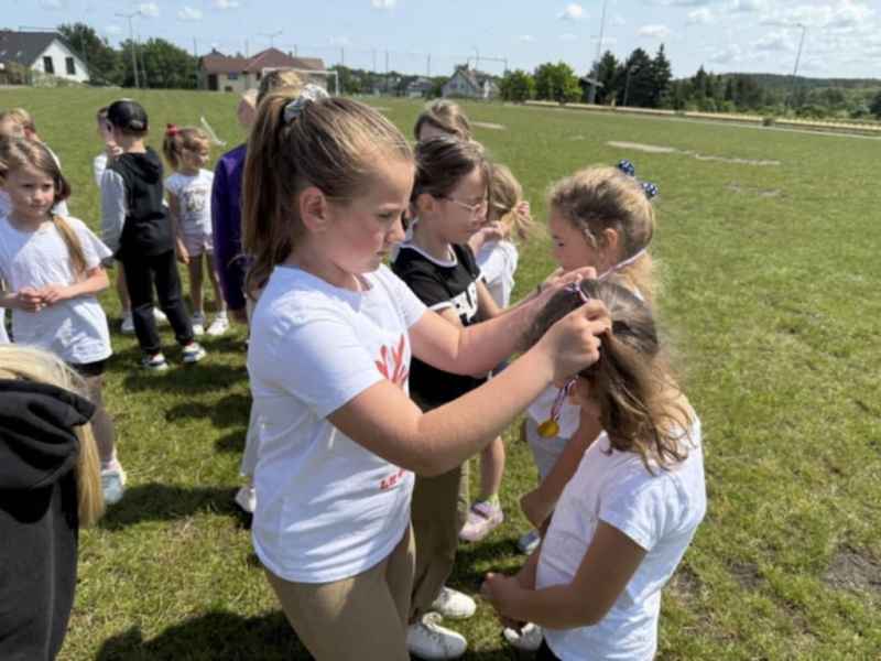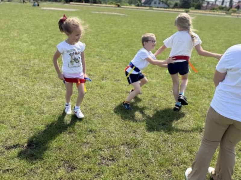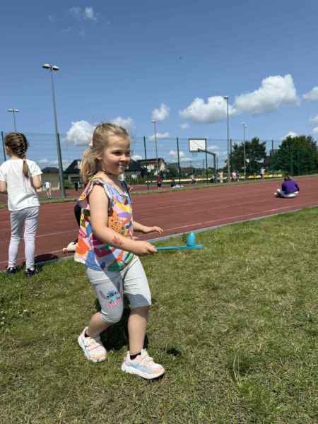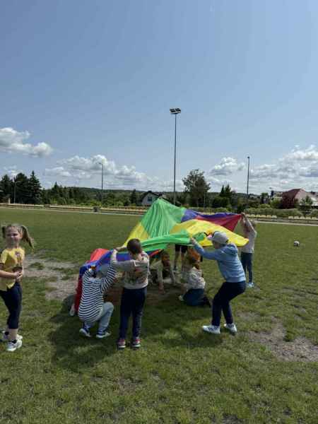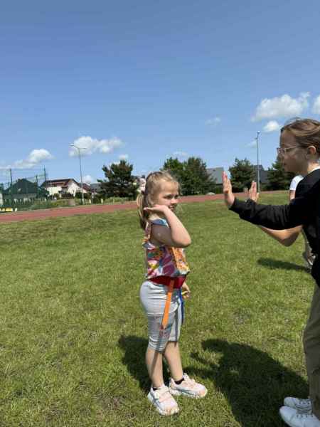 Uczniowie z klasy 3d przygotowali sportowe stacje zadaniowe dla swoich młodszych kolegów i koleżanek z oddziałów 0b i 0c. Na przedszkolaki czekały mega bańki mydlane, slalom z piłką, zabawa w liski, strzelanie goli, skoki w workach, konkurencja z łyżkami, zabawy z chustą a nawet stacja z nauką tańca. Na zakończenie spotkania, zwycięzcy zostali uhonorowani złotymi medalami. Dziękujemy za świetną zabawę!