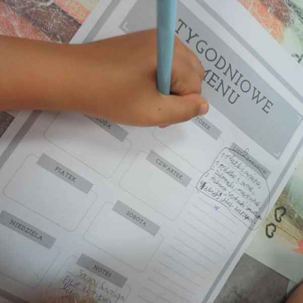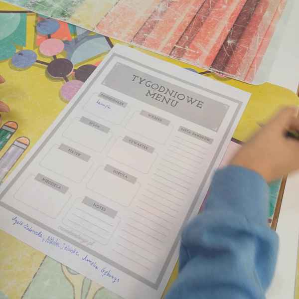 Na kolejne zajęcia zaprosiliśmy wyjątkowego gościa – panią Annę Grabińską, intendentkę naszej szkoły. Pani Anna przybliżyła uczniom zasady układania jadłospisu w szkolnej stołówce i wyjaśniła, jakie produkty powinny znaleźć się w prawidłowym, zbilansowanym posiłku. Po krótkiej, ale bardzo ciekawej prezentacji, uczniowie w grupach spróbowali samodzielnie ułożyć własne jadłospisy.