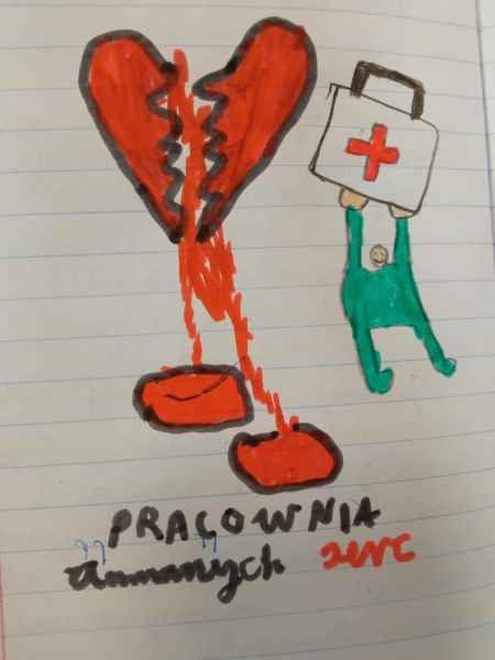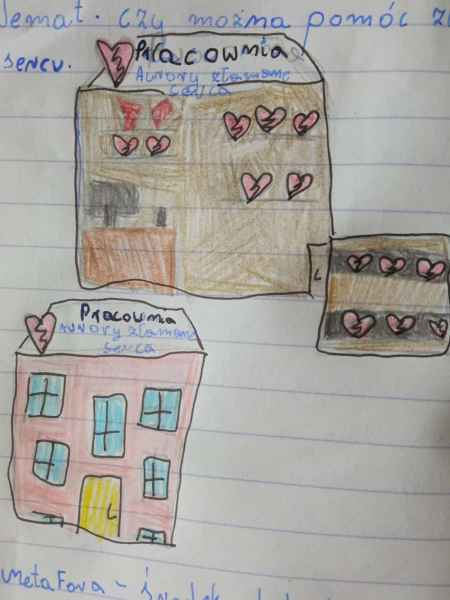 Na lekcji języka polskiego klasy 5b i 5 c zastanawiały się, jak pomóc osobie, której serce połamało się na pół. Po pierwsze poznać przyczynę( smutek, tęsknota, za duże zaangażowanie...itp.). Następnie dobrać kurację (odrobina serdeczności, szczypta zrozumienia...itd.). I wreszcie skleić serce w całość. Zapamiętać, że: "serce z bliznami jest wrażliwsze". Lekcja zakończyła się stworzeniem ilustracji do omawianego tekstu, przedstawiającej warsztat Aurory - naprawiaczki serc. Lekcja została zrealizowana zgodnie z kierunkami polityki oświatowej na rok 2025/2026.