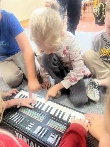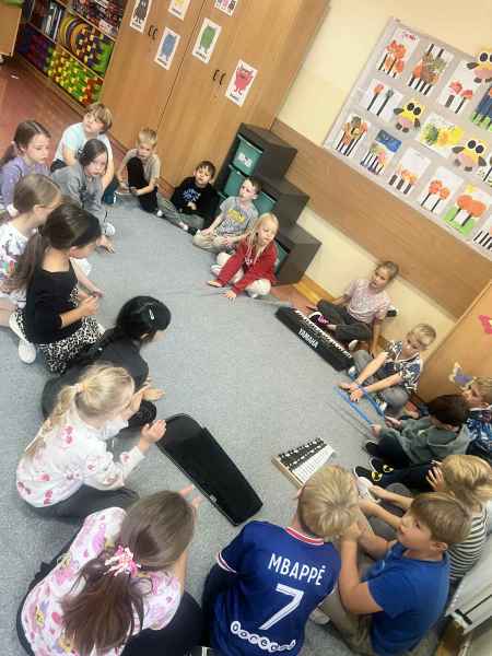 klasie ID odbył się wyjątkowy Dzień Muzyki, zorganizowany w naszej sali lekcyjnej. Uczniowie mieli okazję zaprezentować swoje umiejętności gry na instrumentach przed koleżankami i kolegami z klasy. Podczas spotkania mogliśmy usłyszeć piękne dźwięki pianina, melodie zagrane na dzwonkach, a także obejrzeć pokaz gry pałeczkami perkusyjnymi, który wzbudził duże zainteresowanie. Każdy występ został nagrodzony brawami, a atmosfera w klasie była pełna radości, ciekawości i wzajemnego wsparcia.
