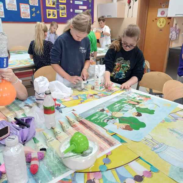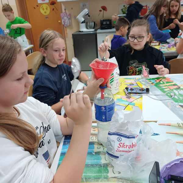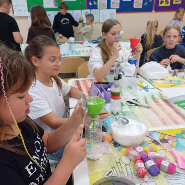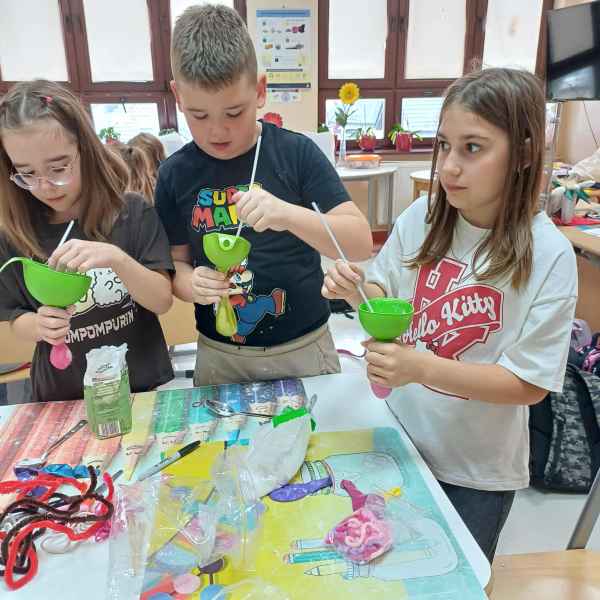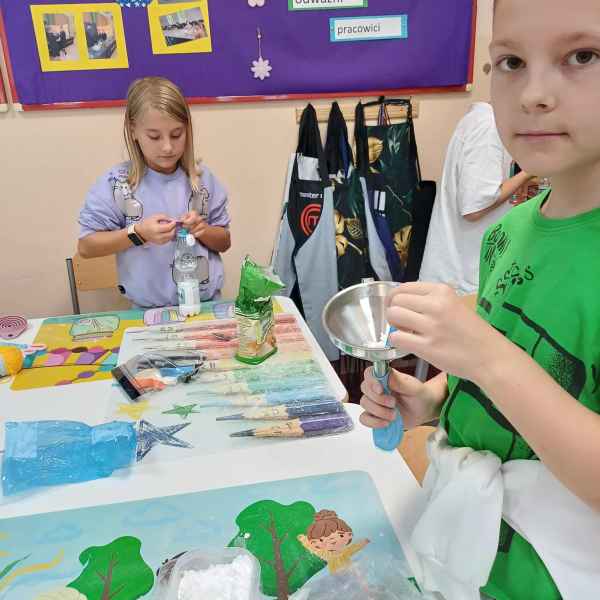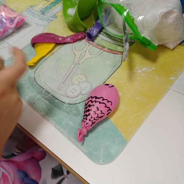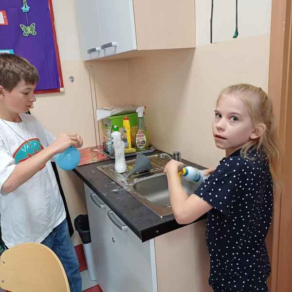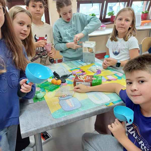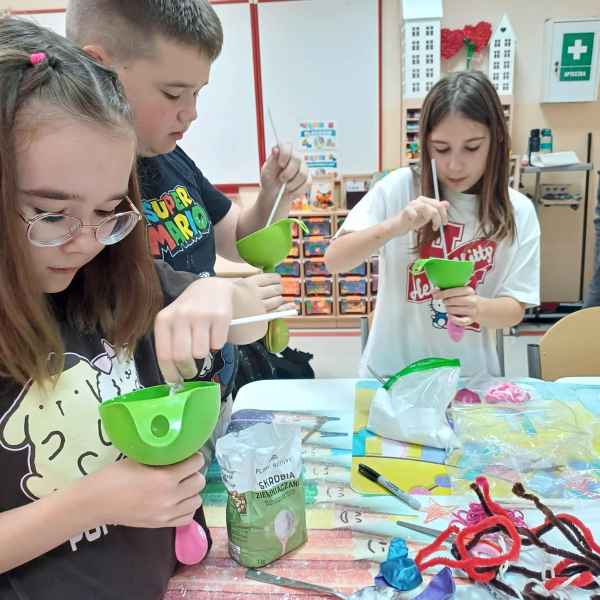 Na zajęciach rozwijających uczniowie klasy 4a zamienili się w małych wynalazców. Ich zadaniem było wykonanie antystresowych gniotków. Do pracy wykorzystali balony, mączkę ziemniaczaną i ryż, a do ozdoby wstążki, markery oraz włóczkę. Każdy gniotek był inny – kolorowy, zabawny i wyjątkowy. Podczas pracy uczniowie chętnie pomagali sobie nawzajem, dzięki czemu nikt nie został bez wsparcia. Gotowe gniotki okazały się świetnymi zabawkami i doskonałym sposobem na odstresowanie się po lekcjach. Klasa 4a udowodniła, że wspólna praca to nie tylko nauka, ale także świetna zabawa!