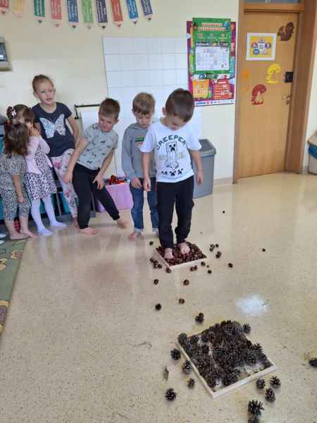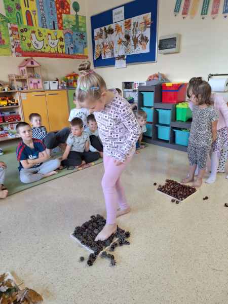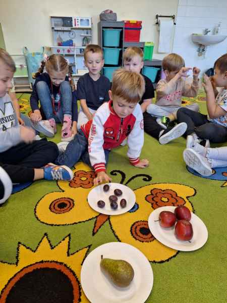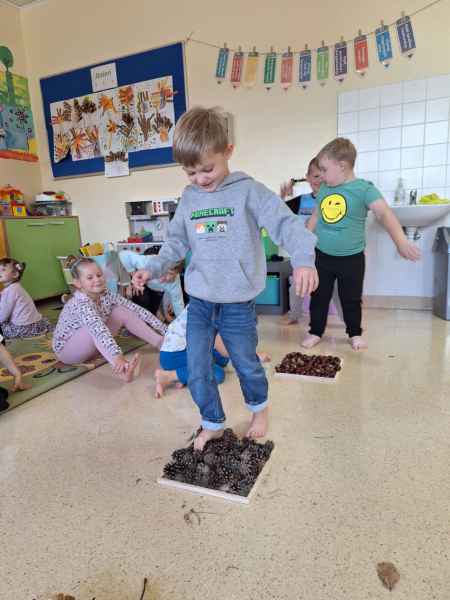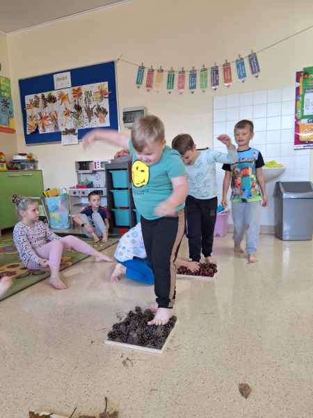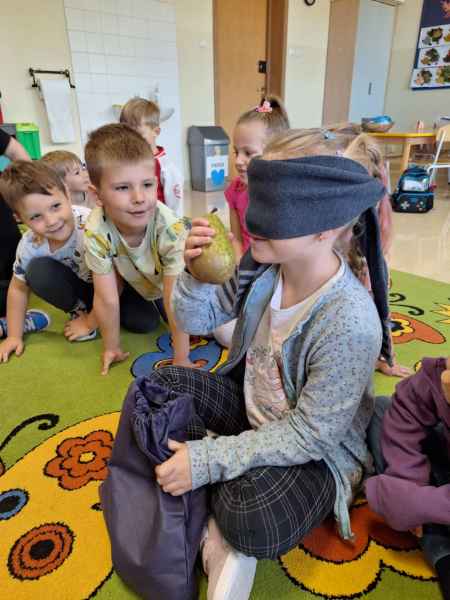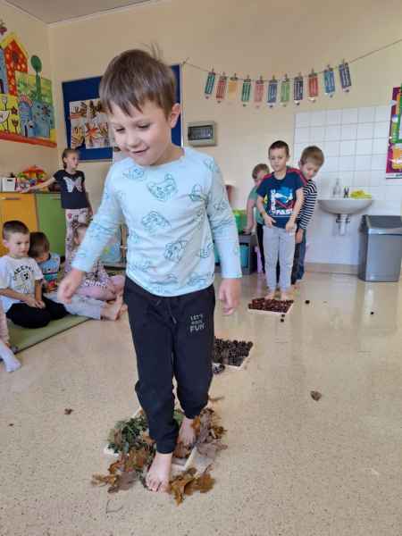 Dzieci poznawały zwiastuny jesieni. Zostały zrealizowane zajęcia dydaktyczne, plastyczne i sensoryczne. Poprzez zmysł dotyku, węchu rozpoznawały i nazywały owoce jesieni. Nie zabrakło też aktywności fizycznej. W środę dzieci poszły do lasu z koszyczkami, szukając darów jesieni. Spacerowali, obserwowali zmiany zachodzące w lesie. Na koniec 0c szła po ścieżce sensorycznej. Wszystkie zajęcia i zabawy sprawiły dzieciom dużo radości!