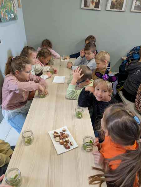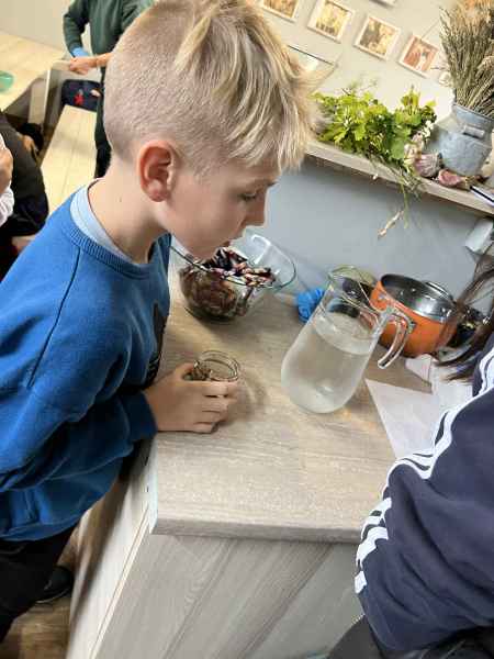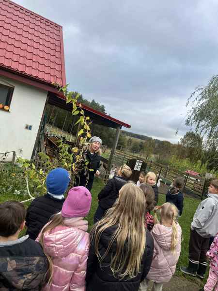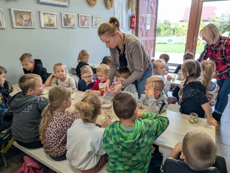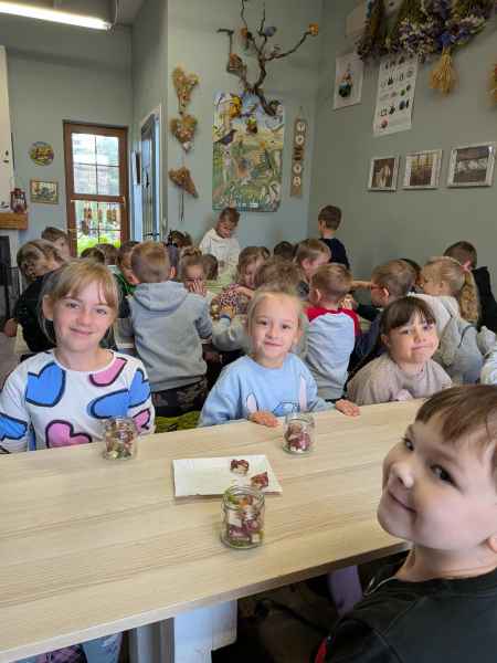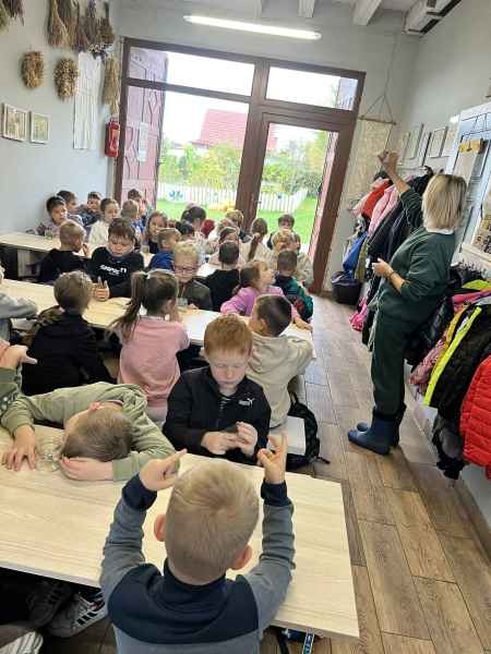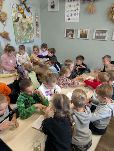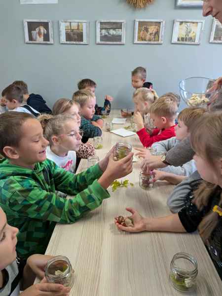 Wszystkie klasy pierwsze w ramach realizacji projektu edukacyjnego "Planeta zdrowia" wybrały się na wyjątkową wycieczkę do Gowińskiej Zagrody Edukacyjnej w Gowinie! Podczas warsztatów „Dzień z Topinamburem” uczniowie poznali to niezwykłe, zdrowe warzywo, a także samodzielnie przygotowali swój własny „słoik odpornościowy”, który zabrali do domu. Nie zabrakło też bliskich spotkań ze zwierzętami - dzieci mogły pogłaskać króliczki, kucyki, owieczki, kózki, a nawet różne gatunki ptactwa. Na zakończenie wycieczki odbył się spacer do pobliskiego lasu, gdzie uczniowie mogli odpocząć i nacieszyć się pięknem przyrody. To był dzień pełen uśmiechu, nauki i dobrej zabawy!