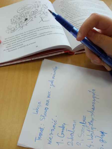 W ramach interdyscyplinarnej innowacji pedagogicznej "Słowo które zmienia świat - słowa o zdrowiu wartościach i relacjach", klasa 4d przekonała się, jak wypowiedziane i napisane wyrazy oddziałują na ich odbiorców. Pierwsze zadanie, które uczniowie wykonywali na lekcji z Panią Patrycją, polegało na wypisaniu przykładów słów "budujących" oraz raniących. Do pracy uczniowie wykorzystali tekst omawianej lektury, "Mikołajka" autorstwa René Goscinnego. Następnie dzieci zastanawiały się, jak mogłyby zwrócić się do osoby, która wykonała niepoprawnie zadane ćwiczenie. Okazało się , że część wypowiedzi " budowała" adresatów wypowiedzi: sprawiała, że uczniowie czuli się pocieszeni, wspierani, zaopiekowani, a nawet zmotywowani do działania. Najwięcej emocji wzbudziły scenki. Zadaniem uczniów było przedstawienie trudnej dla nich sytuacji i zaproponowania poradzenia sobie w niekomfortowej sytuacji. Efekty lekcji możemy podziwiać na zdjęciach poniżej. Są to plakaty z motywującymi słowami.