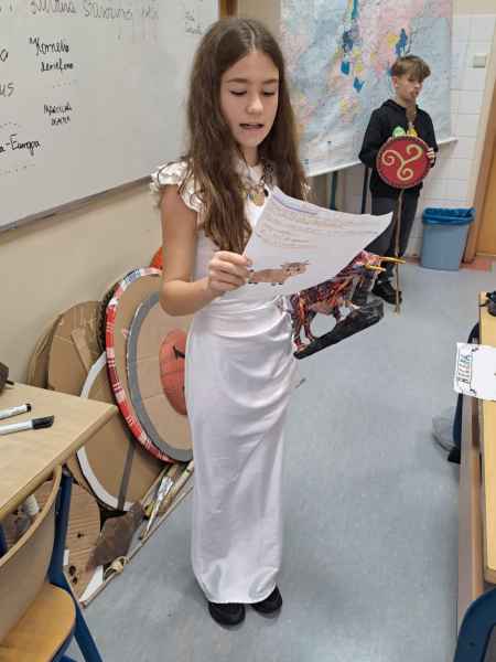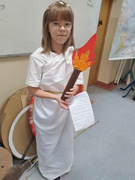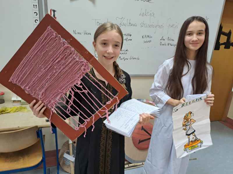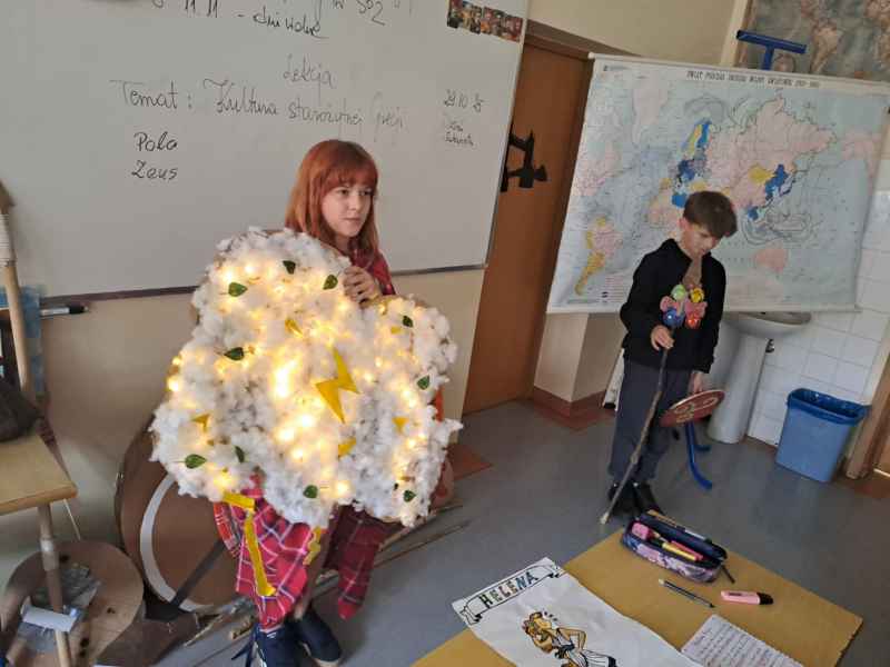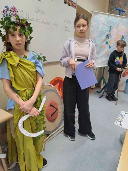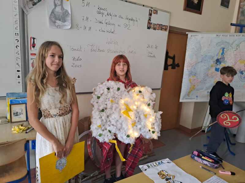 Greccy bogowie, boginie, herosi i tajemnicze postacie przybyły na lekcje historii w klasach 5c i 5d. Starożytni Grecy wierzyli, że na szczycie góry Olimp mieszkali bogowie. Jedli oni ambrozję i pili nektar. Były to boskie przysmaki, które zapewniały im nieśmiertelność oraz wieczną młodość. Według Greków na Olimpie panowała wieczna wiosna i piękna pogoda. Nikt nie chorował. Grecy wyobrażali sobie, że bóstwa nie tylko wyglądają jak ludzie, ale także mają ludzkie cechy charakteru. Bogowie potrafili kochać, być pomocni i przyjaźni. Często jednak bywali złośliwi, samolubni, podstępni, a nawet okrutni. Ich życie i przygody opisywały mity. Uczniowie wcielili się w mitologiczne postacie : Zeusa, Hery, Afrodyty, Posejdona, Hefajstosa, Aresa, Ateny,Hestii, Demeter, Persefony, Penelopy… Czy zgadniecie, kto był kim?