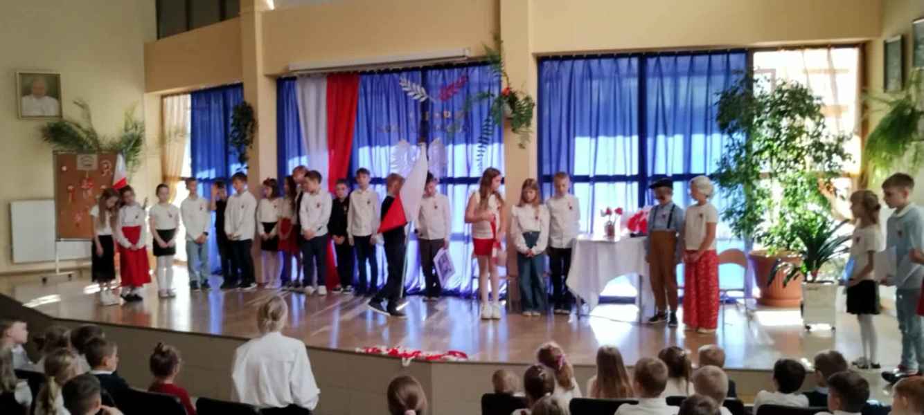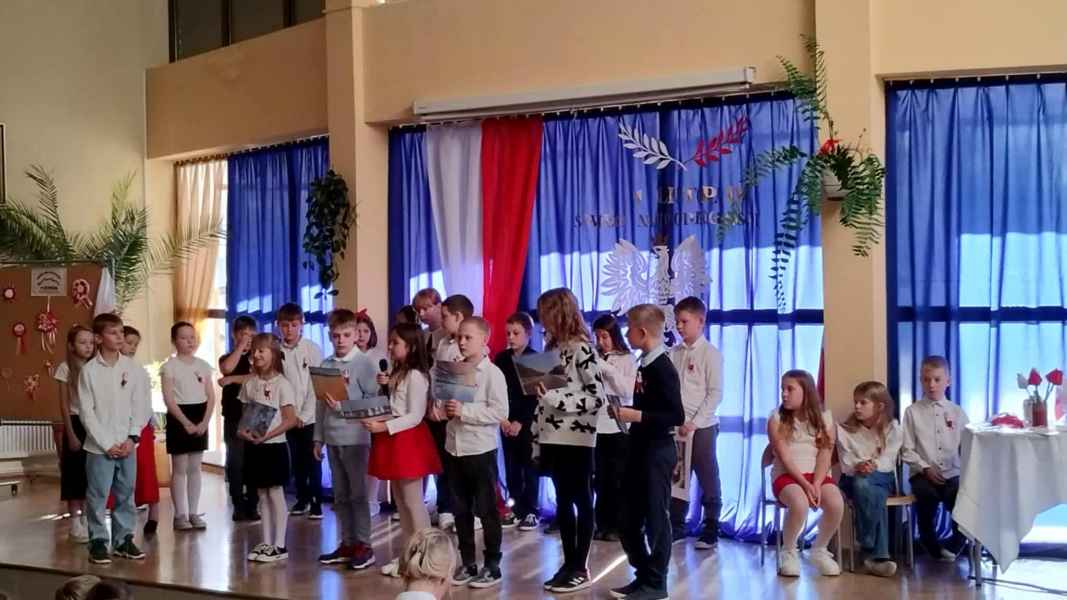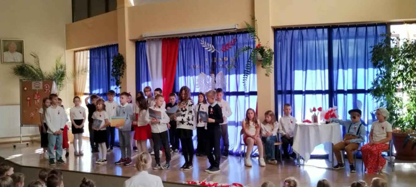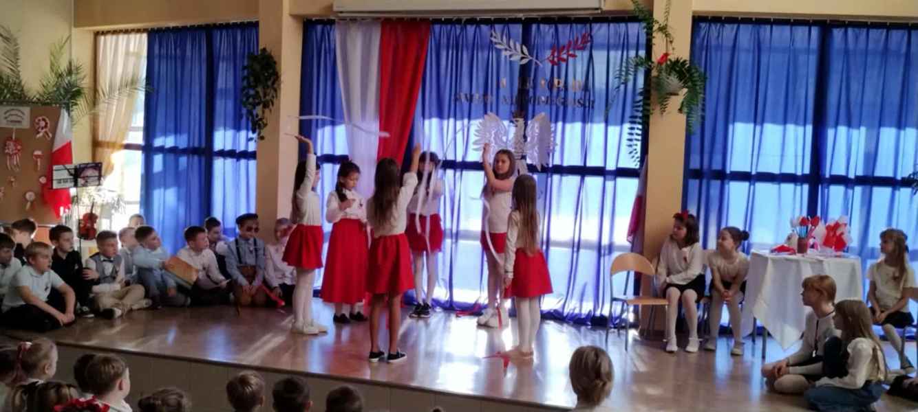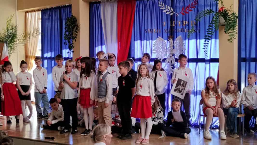 Dnia 7 listopada 2025 r. w naszej szkole odbył się uroczysty apel z okazji Dnia Niepodległości. Uczniowie klas I-III oraz oddziały przedszkolne w odświętnych strojach z przypiętymi kotylionami, odśpiewali hymn narodowy ,,Mazurek Dąbrowskiego". W ciszy i skupieniu wysłuchali części artystycznej przygotowanej przez uczniów klas III A i III D. Dzień ten był dla nas wszystkich lekcją historii i patriotyzmu. Uczestnicząc w obchodach Święta Niepodległości dajemy wyraz pamięci o tych wszystkich, dzięki którym żyjemy dzisiaj w wolnej Polsce.