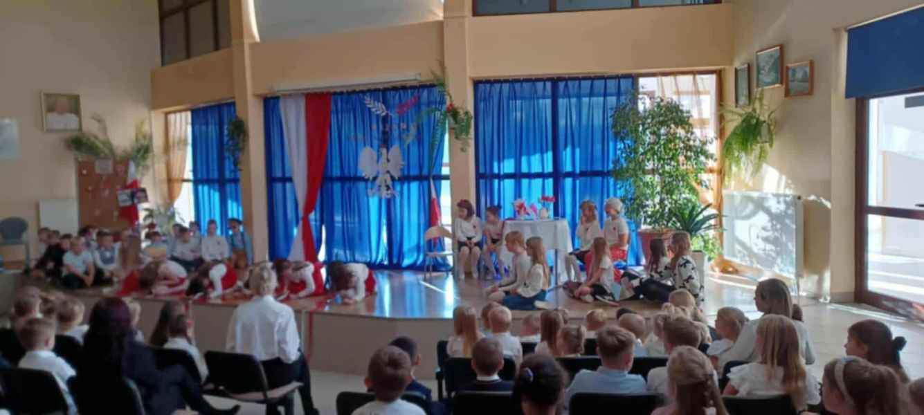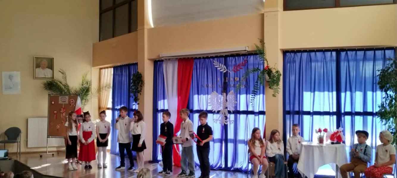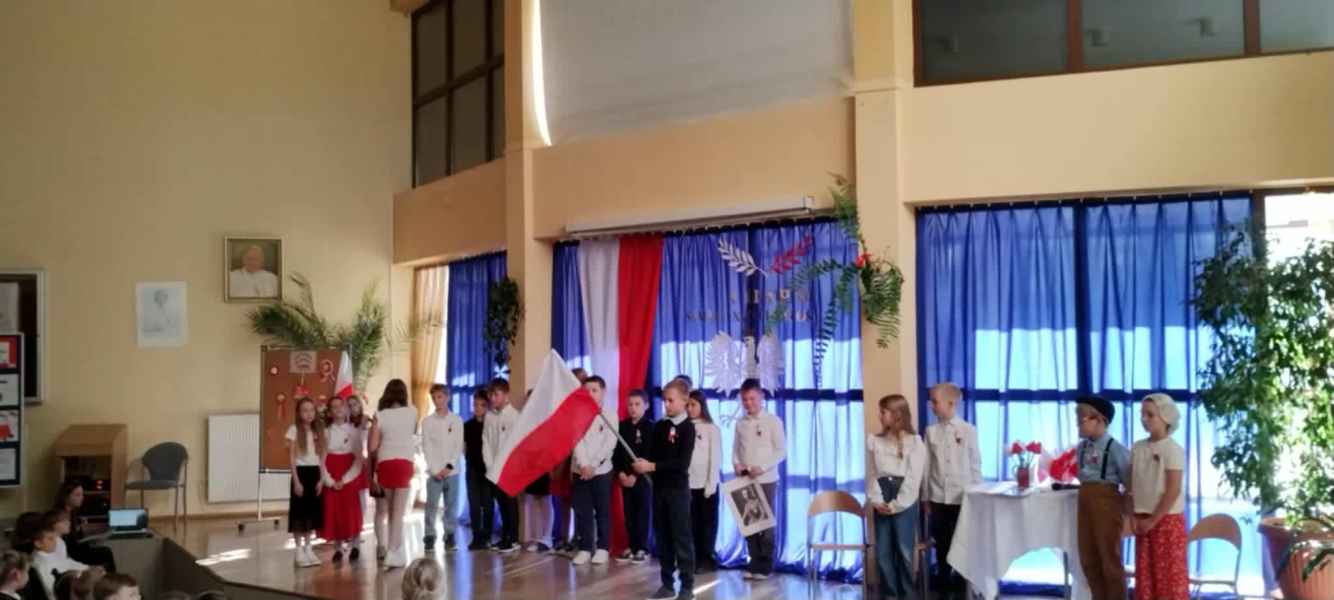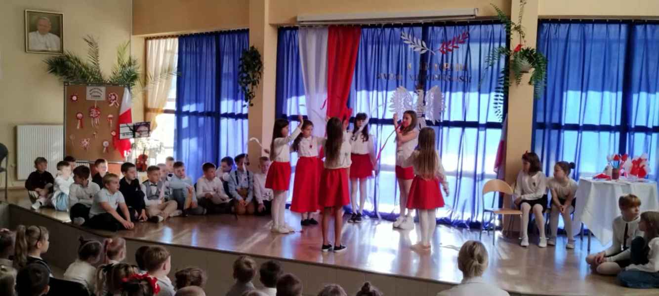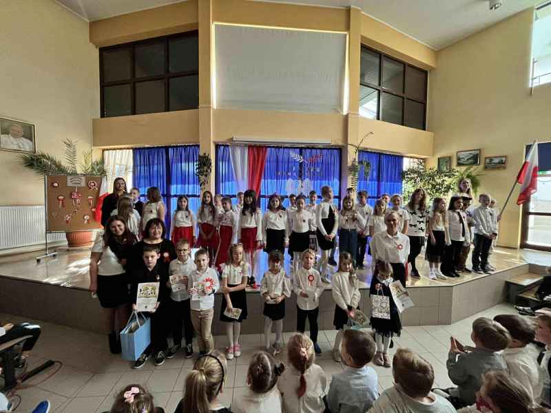 Dnia 7 listopada 2025 r. w naszej szkole odbył się uroczysty apel z okazji Dnia Niepodległości. Uczniowie klas I-III oraz oddziały przedszkolne w odświętnych strojach z przypiętymi kotylionami, odśpiewali hymn narodowy ,,Mazurek Dąbrowskiego". W ciszy i skupieniu wysłuchali części artystycznej przygotowanej przez uczniów klas III A i III D. Dzień ten był dla nas wszystkich lekcją historii i patriotyzmu. Uczestnicząc w obchodach Święta Niepodległości dajemy wyraz pamięci o tych wszystkich, dzięki którym żyjemy dzisiaj w wolnej Polsce.