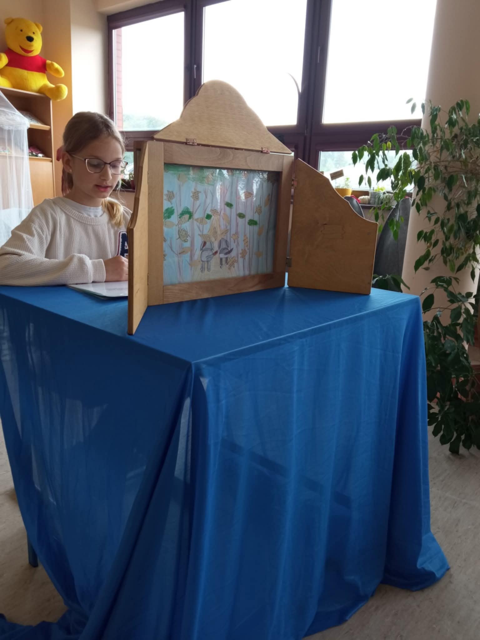 Z dumą prezentujemy fotorelacje z przedstawienia kamisibai, które odbyło się 5 czerwca o godzinie 9:50 w Bibliotece Motyli. Publiczność dopisała. W ciszy i skupieniu śledziła losy bohaterów stworzonych przez: Alana Ammera, Zuzannę Kałużniak, Blankę Rzeppę, Milenę Stawicką i Weronikę Formella. Dzieci z radością i uznaniem oglądały ilustracje narysowane przez starszych kolegów. Nadzór merytoryczny nad innowacją sprawowały: pani Małgorzata Jednoralska-Józefczyk oraz pani Patrycja Fijałkowska. Pokaz zakończył się uroczystym wręczeniem dyplomów i upominków twórcą bajki przez panią Dyrektor Bożenę Brzuzy. Serdecznie zapraszamy na kolejne przedstawienia ( zapisy w Bibliotece Motyli).