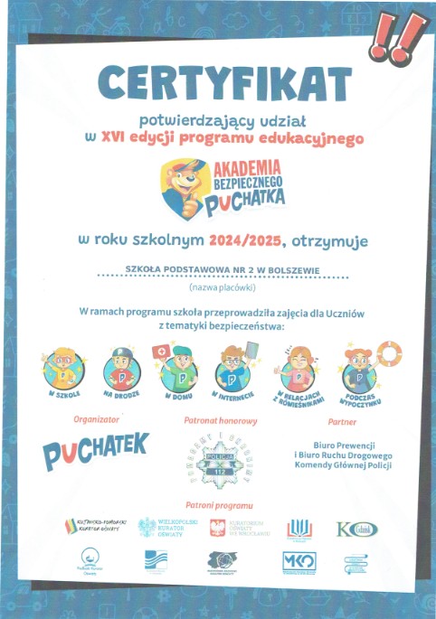 Czytaj więcej: PROGRAM EDUKACYJNY „AKADEMIA BEZPIECZNEGO PUCHATKA”