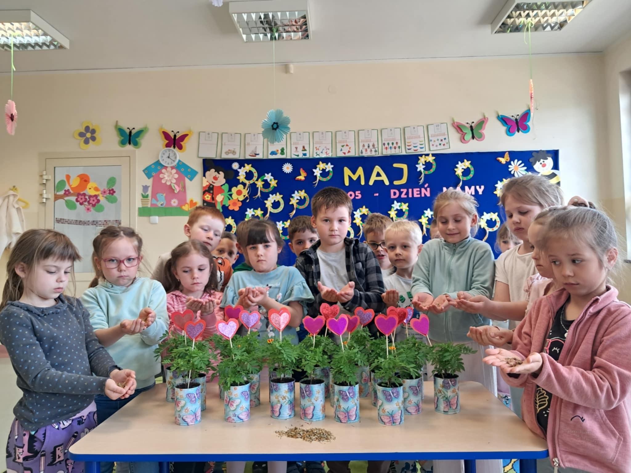 Grupa przedszkolna 0a w roku szkolnym 2024/25 pod nadzorem wychowawcy pani Sabiny Kwidzińskiej przystąpiła do realizacji projektu edukacyjnego "Od nasionka do kwiatka". Projekt ten wzbogacił dzieci o nowe doświadczenie i wiedzę, był bardzo atrakcyjny dla uczniów. Wywoływał dużo pozytywnych emocji. W końcowym etapie projektu dzieci własnoręcznie wyhodowane kwiatki, w pięknych doniczkach pochodzących z recyklingu, ozdobionych techniką decoupage wręczyły swoim mamom z okazji Dnia Matki w podziękowaniu za trud wychowania.