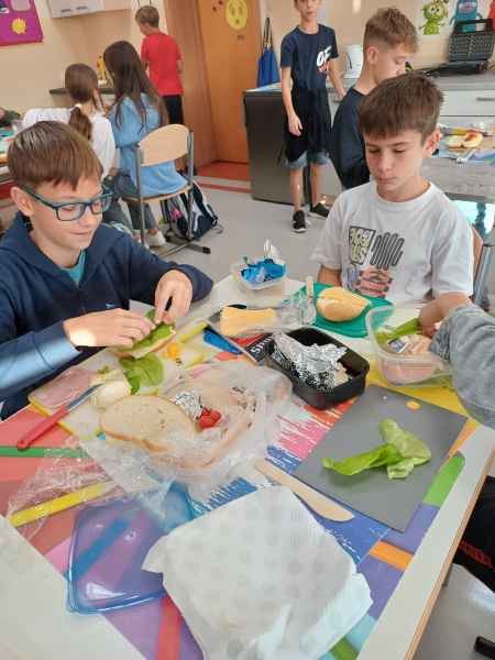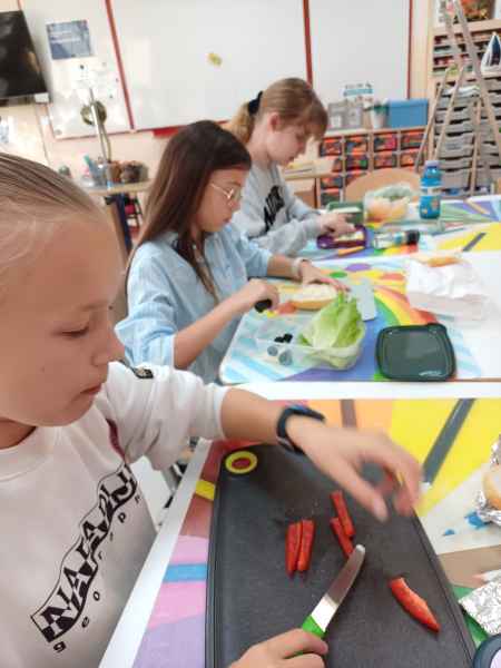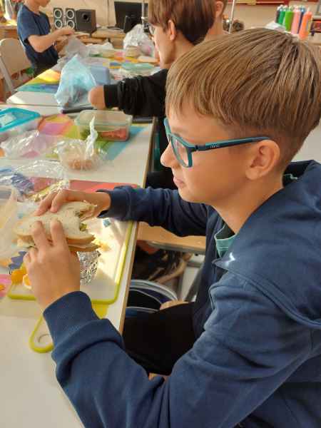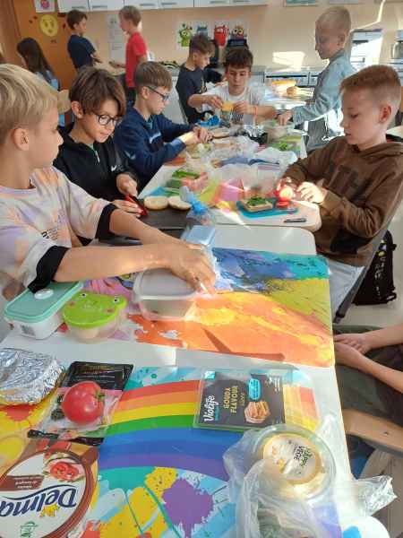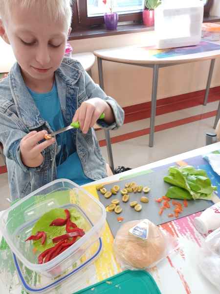 29 września w ramach zajęć rozwijających w Laboratoria Przyszłości klasy 5 g i f wzięły udział w lekcji kulinarnej ” Zdrowa kanapka” pod bacznym okiem nauczyciela - pani Bożeny Reszke. Wszystko działo się w naszej pracowni kulinarnej. Uczniowie zabrali się za skomponowanie swojej własnej, zdrowej i kolorowej kanapki.