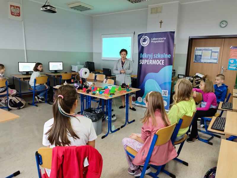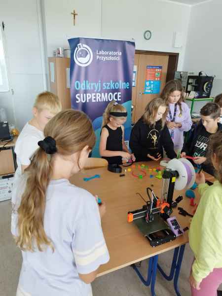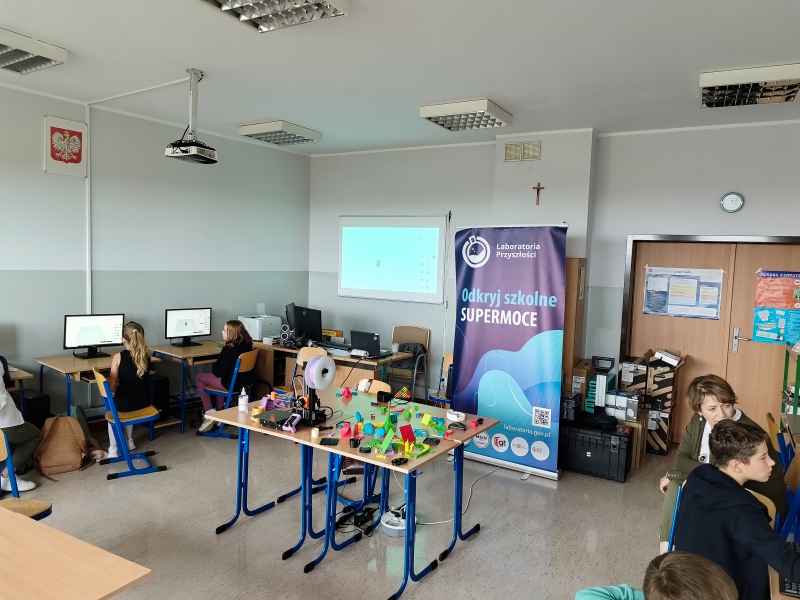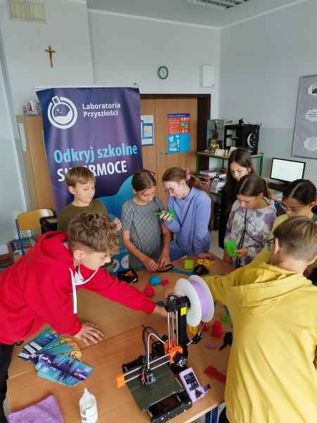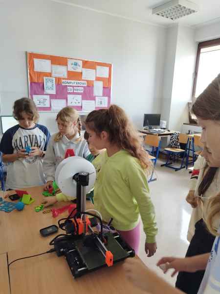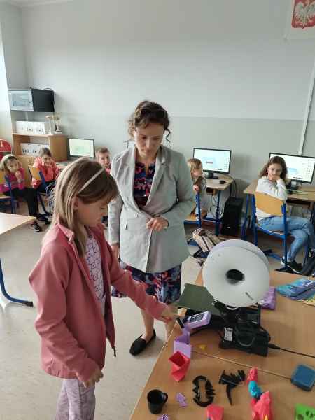 Zaproszeni edukatorzy przeprowadzili w formie warsztatowej zajęcia z uczniami z wykorzystaniem nowych technologii, czyli sprzętu, który szkoła otrzymała w ramach tego projektu. Podczas zajęć uczniowie zgłębiali tematykę druku 3D. Zapoznali się z budową drukarki, własnościami wydruków oraz wspólnie przygotowali projekt do wydruku. To były udane zajęcia.