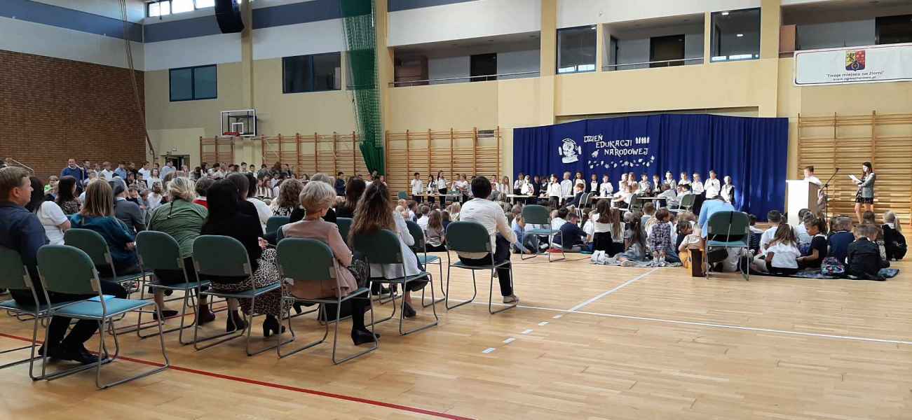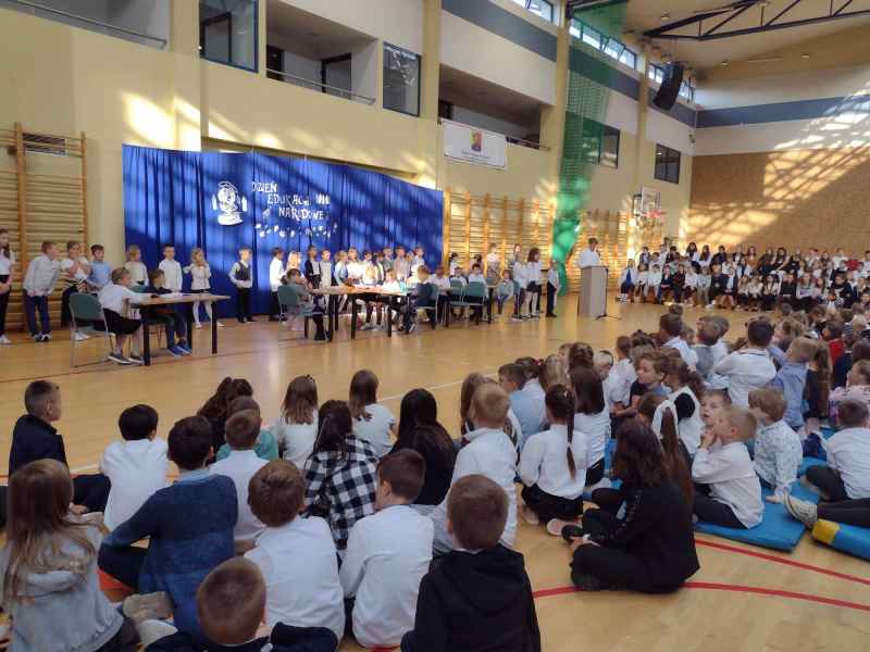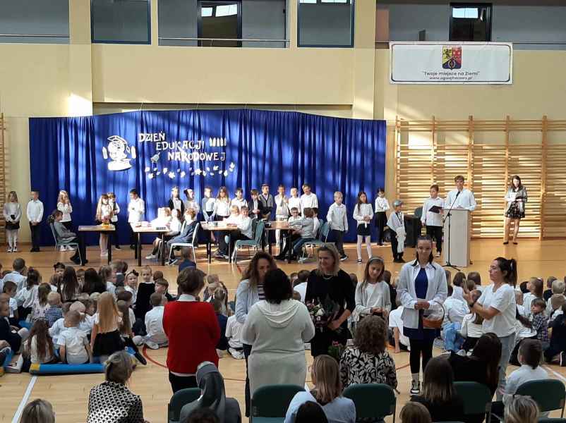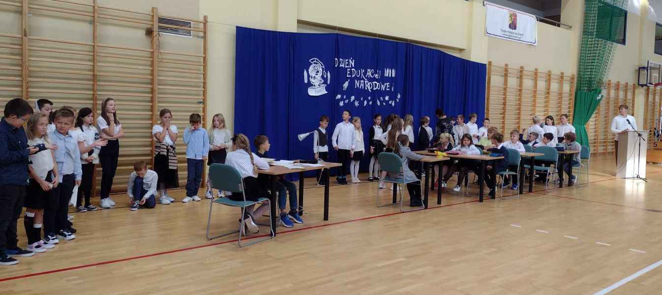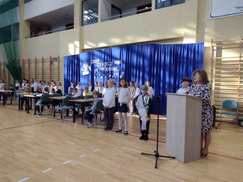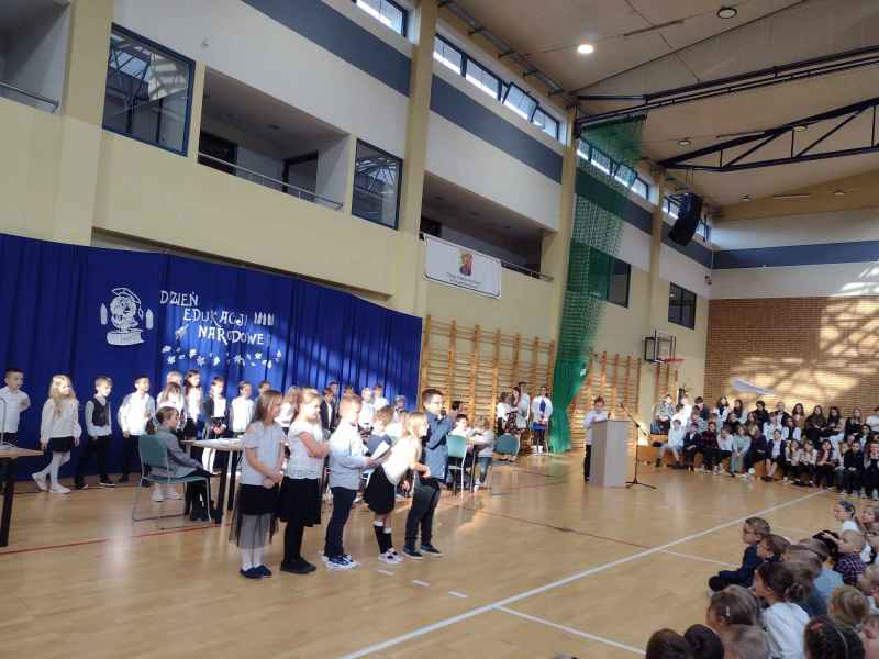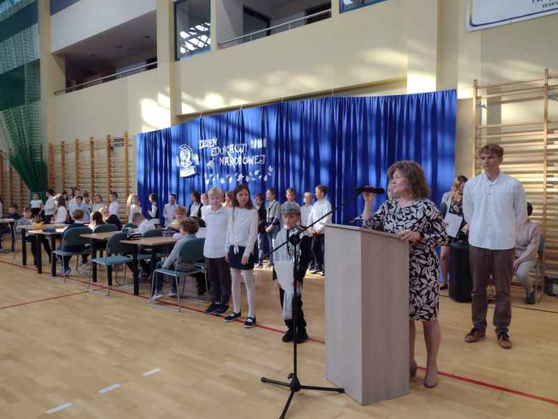 W piątek 13 października w naszej szkole nauczyciele, pracownicy i uczniowie świętowali Dzień Edukacji Narodowej. W tym roku był to szczególny dzień – 250. rocznica powołania Komisji Edukacji Narodowej (1773 r.) Tradycyjnie whali sportowej zgromadzili się wszyscy uczniowie i pracownicy szkoły. Przewodniczący Samorządu Uczniowskiego, Leon Stolc, przywitał zgromadzonych, a następnie głos zabrała pani dyrektor Bożena Brzuzy,