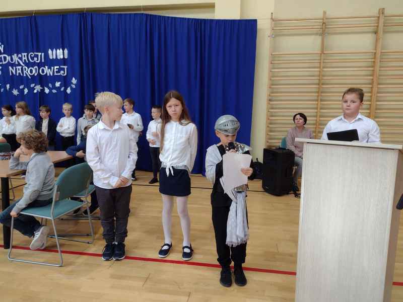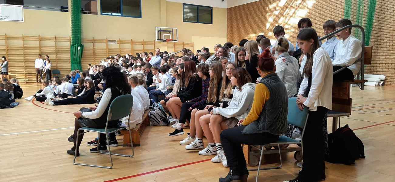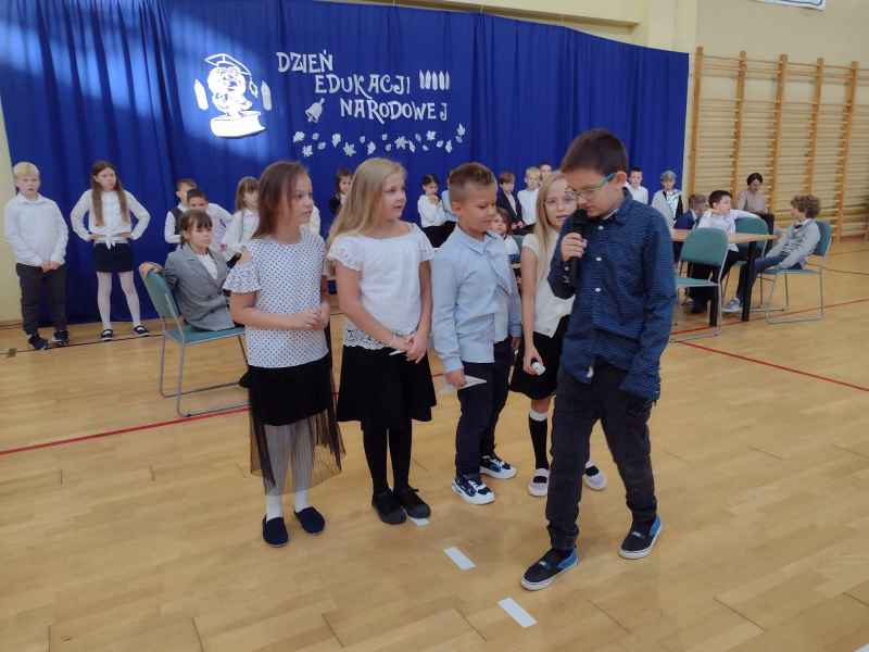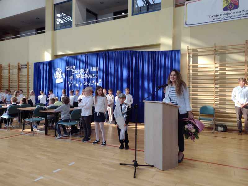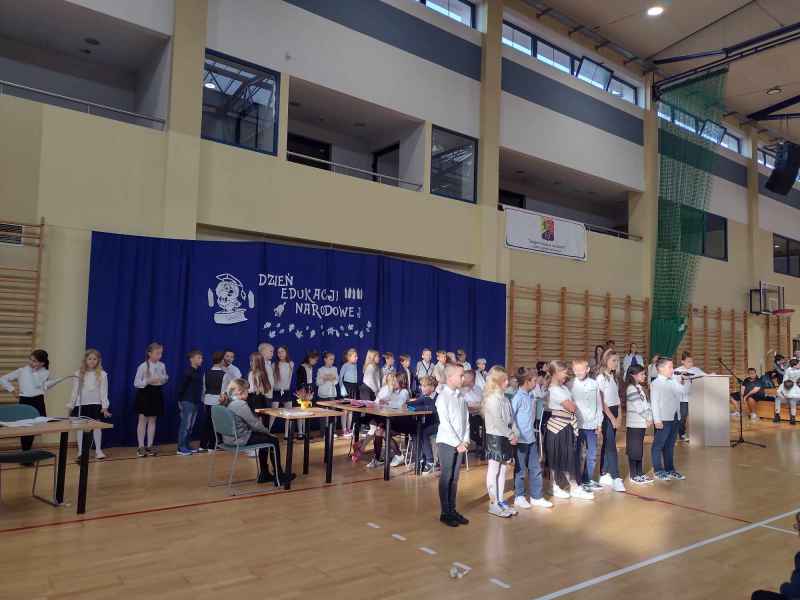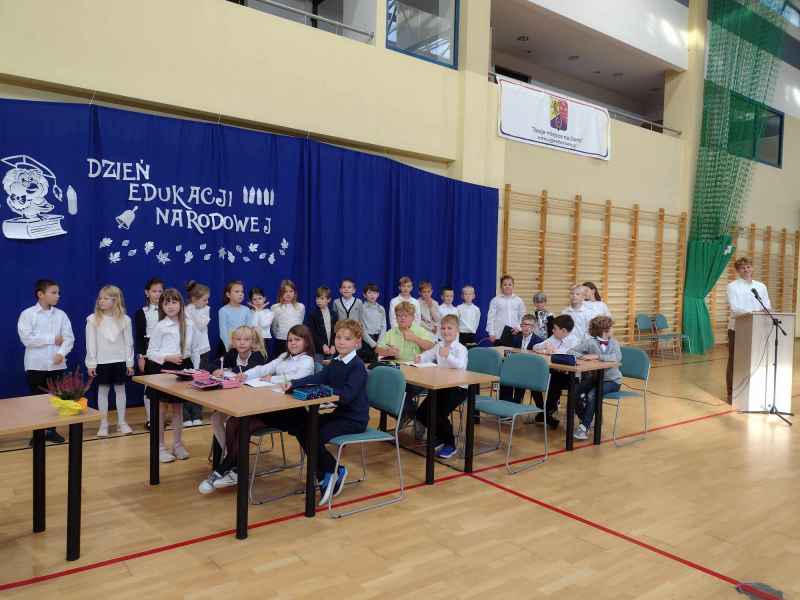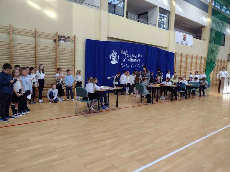 W piątek 13 października w naszej szkole nauczyciele, pracownicy i uczniowie świętowali Dzień Edukacji Narodowej. W tym roku był to szczególny dzień – 250. rocznica powołania Komisji Edukacji Narodowej (1773 r.) Tradycyjnie whali sportowej zgromadzili się wszyscy uczniowie i pracownicy szkoły. Przewodniczący Samorządu Uczniowskiego, Leon Stolc, przywitał zgromadzonych, a następnie głos zabrała pani dyrektor Bożena Brzuzy,
