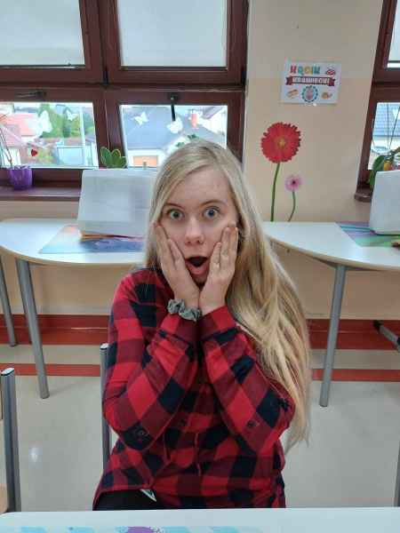 W październiku otrzymaliśmy zadanie pierwsze -emocja-ZASKOCZENIE. Zaskoczenie to emocja, która pojawia się w odpowiedzi na nagłe, niespodziewane lub rzadko występujące zdarzenie. To znaczy, że nie będziemy zaskoczeni np. reakcją znajomego, której oczekiwaliśmy lub która jest dla niego typowa. Zwykło się mówić o pozytywnym i negatywnym zaskoczeniu, ale tak naprawdę jest ono emocją neutralną.. Zaskoczenie jest bardzo krótkotrwałe i zazwyczaj pociąga za sobą inne emocje. W połączeniu z radością daje zachwyt, a ze smutkiem – rozczarowanie.
