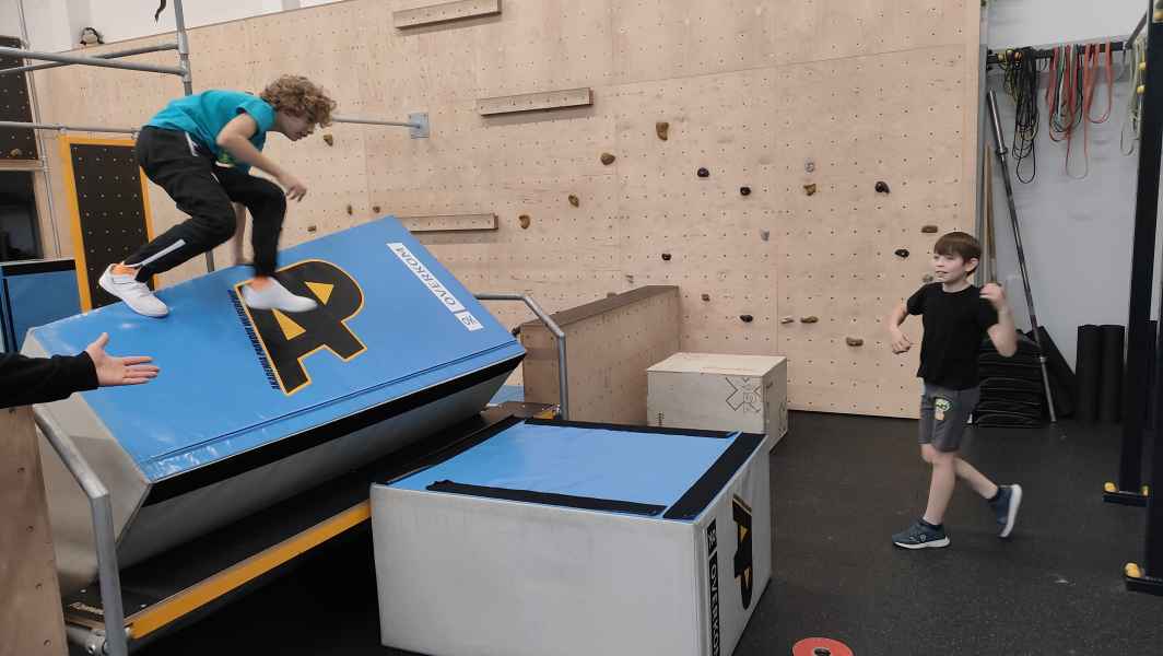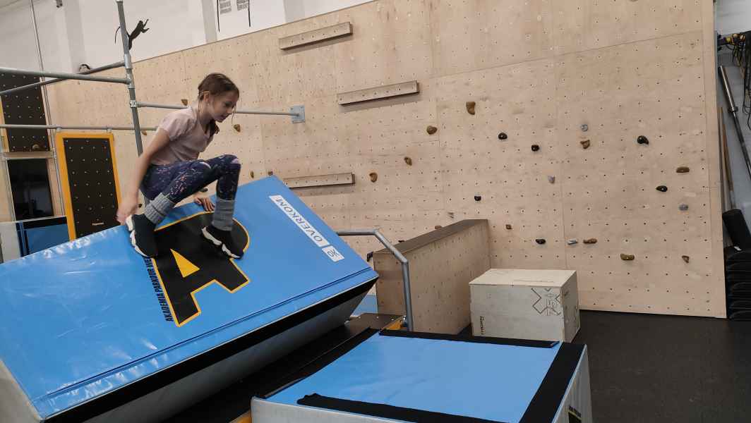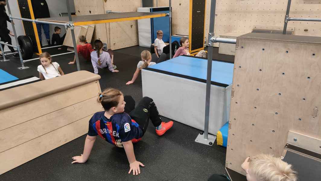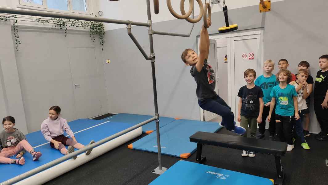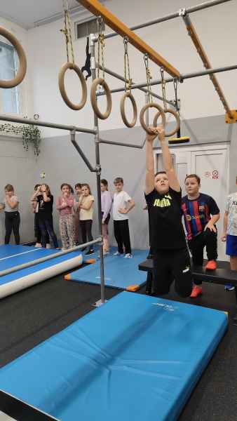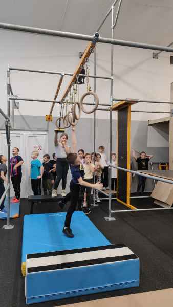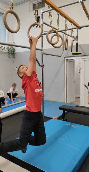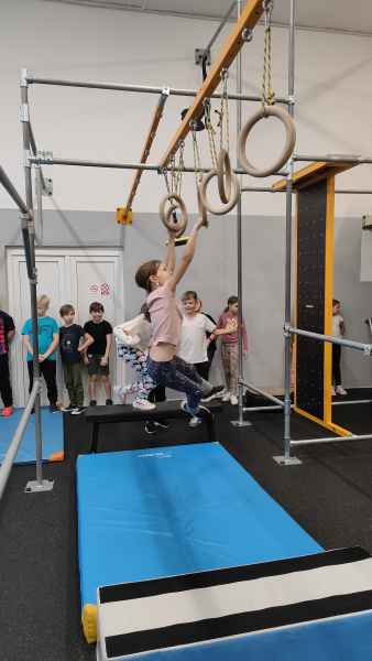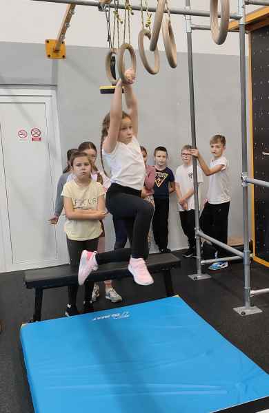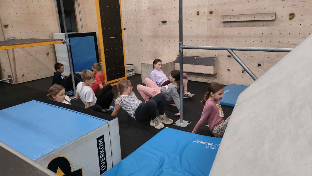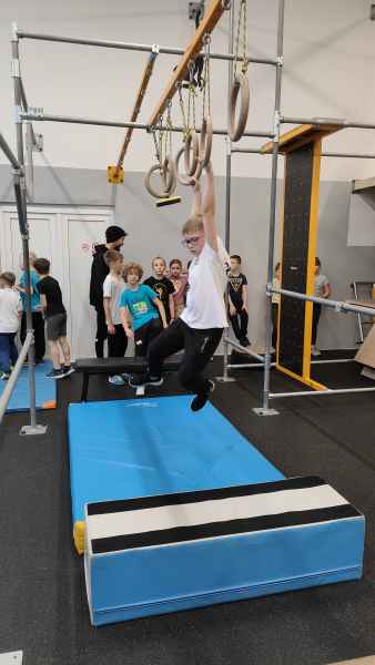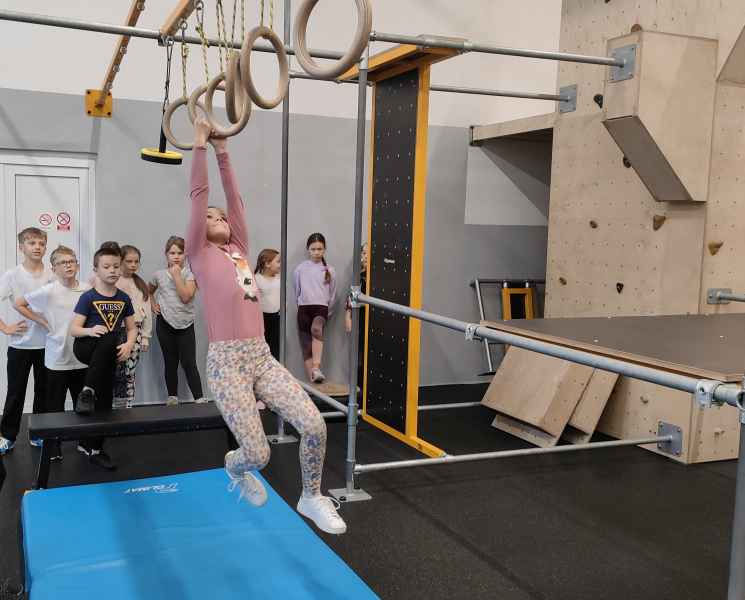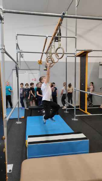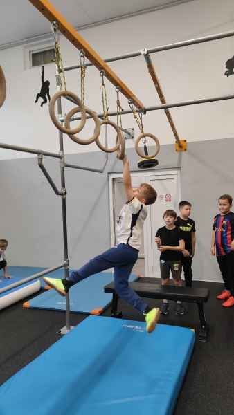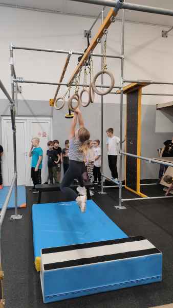 W sali treningowej, która wyposażona jest w najwyższej jakości sprzęt i narzędzia treningowe, dzieci poznały kilka ćwiczeń akrobatycznych i parkour. Niektórzy od razu złapali „bakcyla” i czuli się jak ryby w wodzie. Inni potrzebowali na to trochę więcej czasu, ale finalnie wszyscy wrócili bardzo zadowoleni.