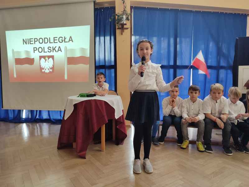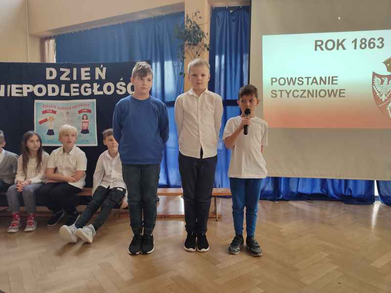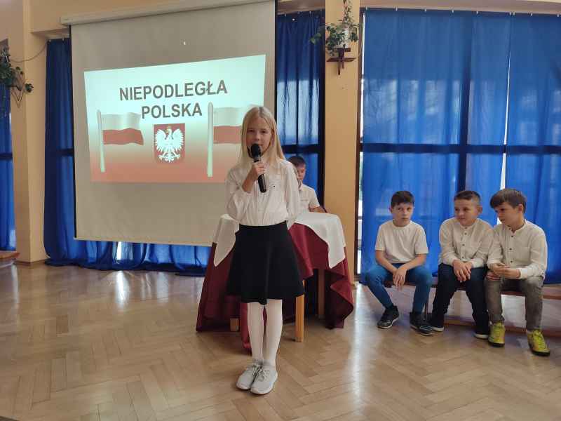 Dzieci przedstawiły najważniejsze wydarzenia historyczne, które rozegrały się w okresie ponad stuletniej niewoli oraz te, które ostatecznie doprowadziły do odzyskania przez Polskę upragnionej niepodległości. Program artystyczny wzbogacony został prezentacją multimedialną, która ściśle współgrała z tekstami recytowanymi przez młodych aktorów. Nie zabrakło także piosenek związanych z tematyką niepodległości i patriotyzmu. Do wspólnego śpiewania aktywnie włączyła się cała publiczność.