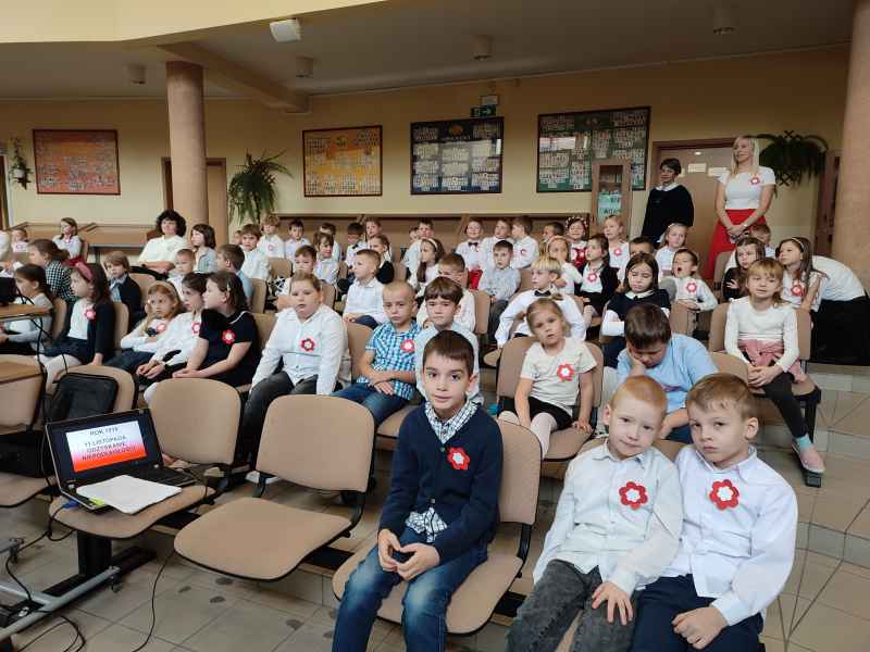 Uczniowie klasy 3C, wraz z opikunkami p. Anitą Walkusch i p. Aleksandrą Szmidke dziękują całej społeczności klas młodszych za możliwość wspólnego przeżywania i świętowania tak waznego dla naszej Ojczyzny wydarzenia.