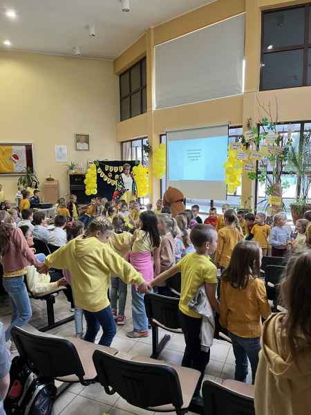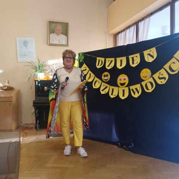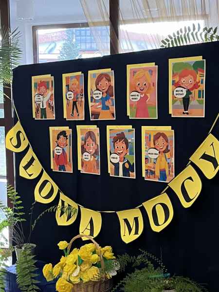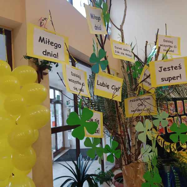 Aula udekorowana w żółte balony z pozytywnymi emotkami. Korytarz zamienił się w „Aleję Życzliwości” wypełnioną licznymi cytatami i myślami na temat serdeczności, przyjaźni i życzliwości. Na dekoracji w auli umieszczono „Słowa Mocy” oraz „Drzewo Życzliwości”, na których zawieszono magiczne słowa.