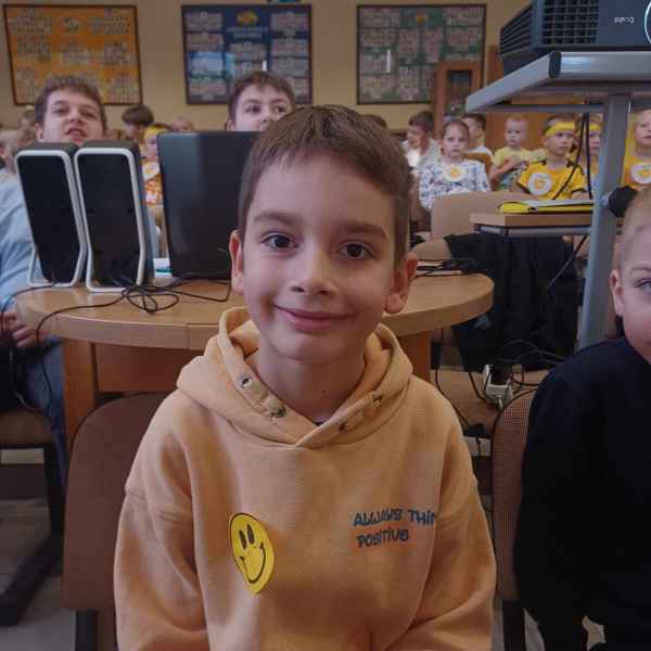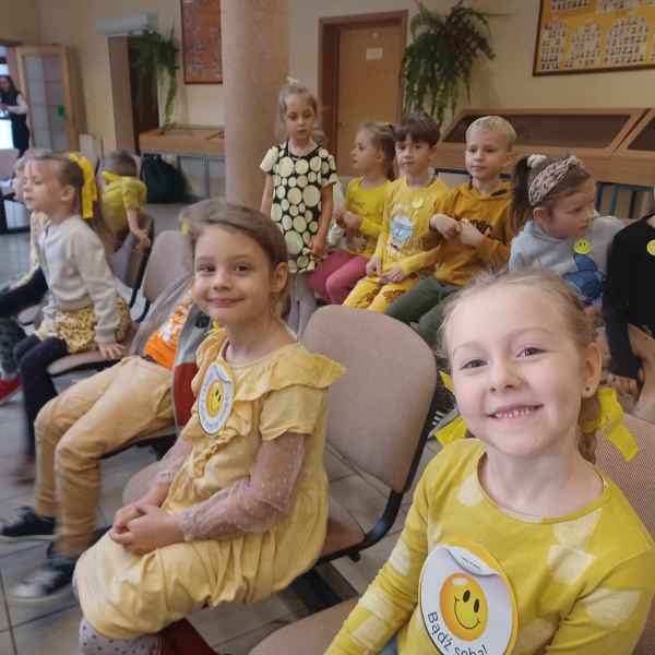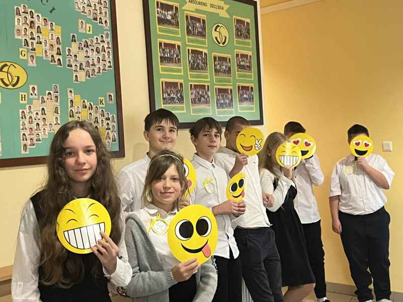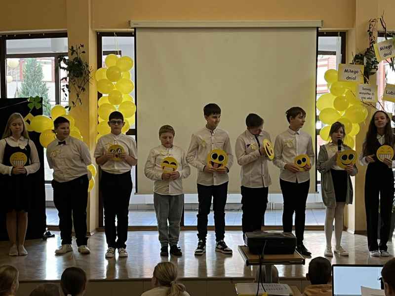 Świętowanie tegorocznego dnia Życzliwości rozpoczęliśmy od samego rana.Uczniowie przyszli do szkoły ubrani w kolorze żółtym-symbol radości i optymizmu.