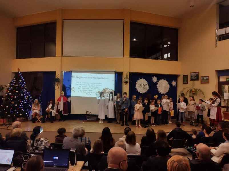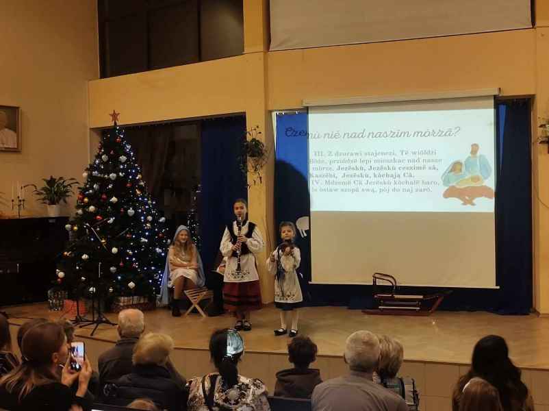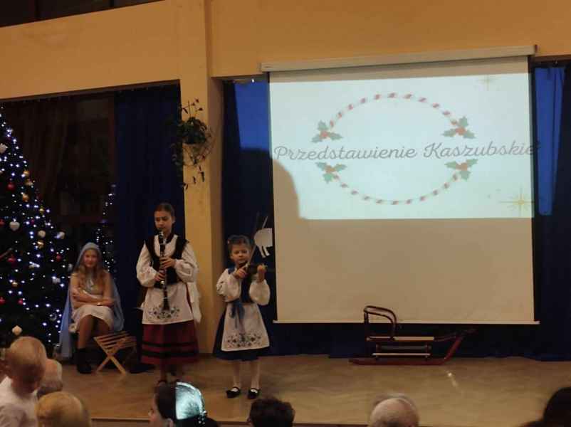 Na początku została przedstawiona scenka z życia dzieci, które pragnęły przypomnieć sobie historię o narodzeniu Jezusa, a następnie były świadkiem tamtego wydarzenia, któremu towarzyszyło przybycie aniołów, gwiazdek i królów. Prezentacje postaci z zespołu wzbogacały śpiewane przez dzieci kolędy w języku kaszubskim. Do śpiewu włączali się również zaproszeni goście, dla których na klarnecie i skrzypcach zagrały siostry: Agata i Zuzia Kowalewskie. Paweł Czarnecki przygotował prezentację multimedialną z tekstami utworów, a Filip Kaliszuk zadbał o podkłady muzyczne.