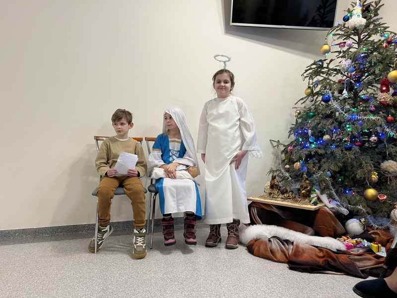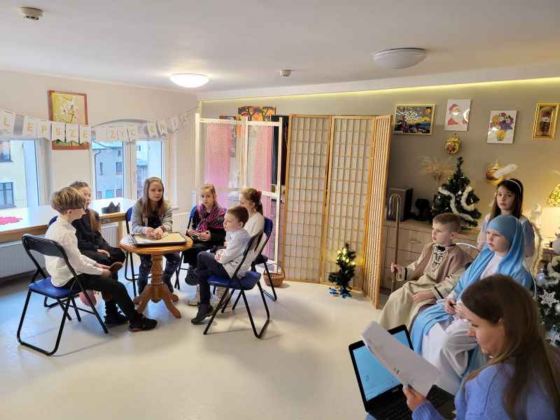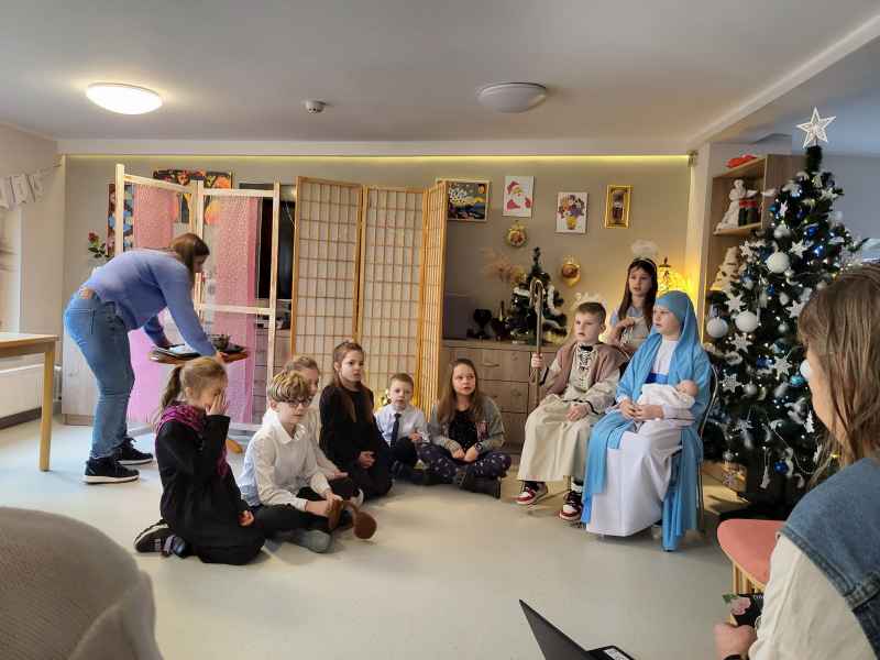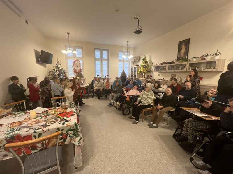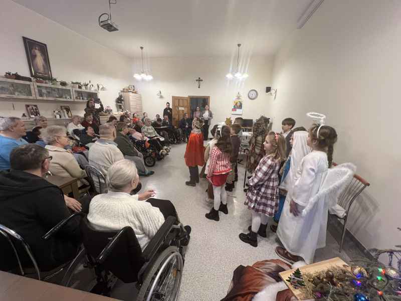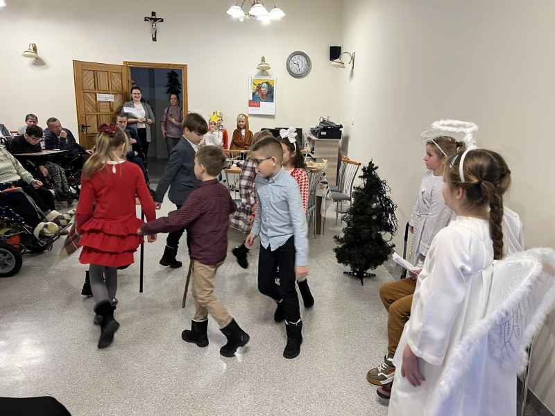 Uczniowie klas 2c i 2d wraz z wychowawczyniami oraz opiekunami odwiedzili Dom Pomocy Społecznej prowadzony przez Zgromadzenie Sióstr Miłosierdzia św. Wincentego a Paulo w Wejherowie oraz Dom Pomocy Społecznej przy ul. Przebendowskiego w Wejherowie. Mieszkańcy oraz pracownicy Domów Pomocy Społecznej serdecznie goszcząc uczniów naszej szkoły obejrzeli przedstawienie pt. "Rodzinne jasełka". Aktorzy z zaangażowaniem odegrali swoje role, które były wstępem do życzeń i serdecznych rozmów. Widownia z zachwytem i ogromną radością wspierała aktorów wpólnym śpiewem kolęd. Po zakończonym występie drugoklasiści odbarowali zgromadzonych seniorów laurkami z okazji Dnia Babci i Dziadka, które wykonała społeczność naszej szkoły.