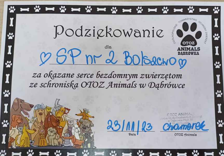 Obdarowaliśmy Podopiecznych OTOZ Animals - schronisko dla zwierząt, Pacjentów Szpitali Pomorskich, Podopiecznych Domu Pomocy Społecznej w Wejherowie oraz potrzebującą rodzinę w ramach XXIII Ogólnopolskiej Akcji - Szlachetna Paczka.