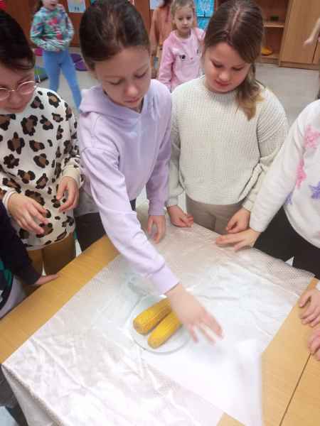 Czy popcorn jest zdrowy? Jaki może mieć kształt? Co smakuje uczniom bardziej: gotowana czy prażona kukurydza? O właściwościach, stylach prażenia i o upodobaniach smakowych nie tylko rozmawialiśmy.