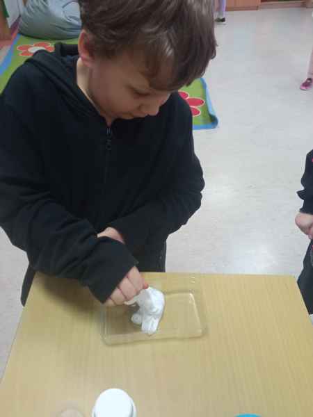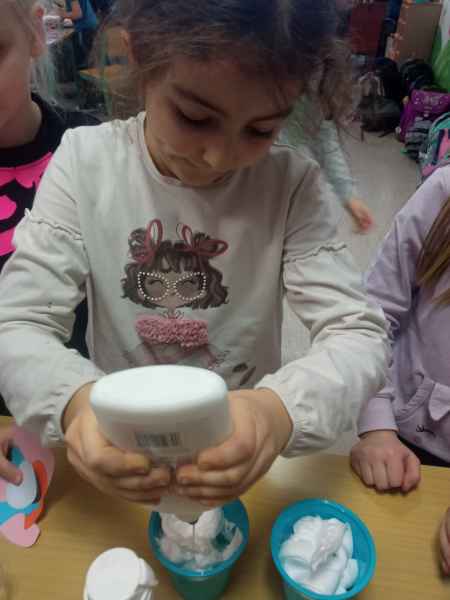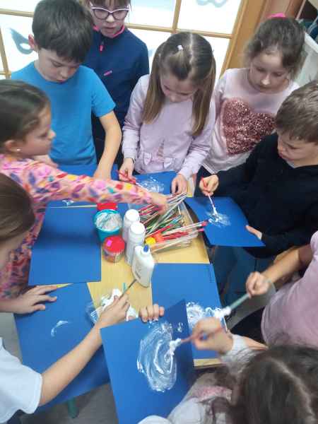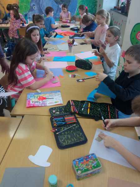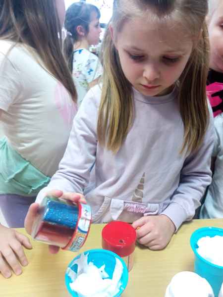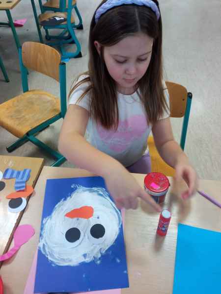 "Zima jest po to, aby dzieci bałwany mogły sobie lepić..." a co zrobić, kiedy śniegu brak? W czwartkowe popołudnie, w świetlicy szkolnej, uczniowie wraz z Paniami znaleźli sposób na ulepienie bałwana.
