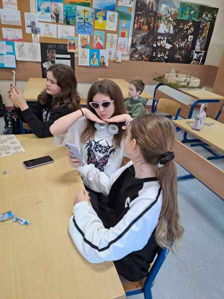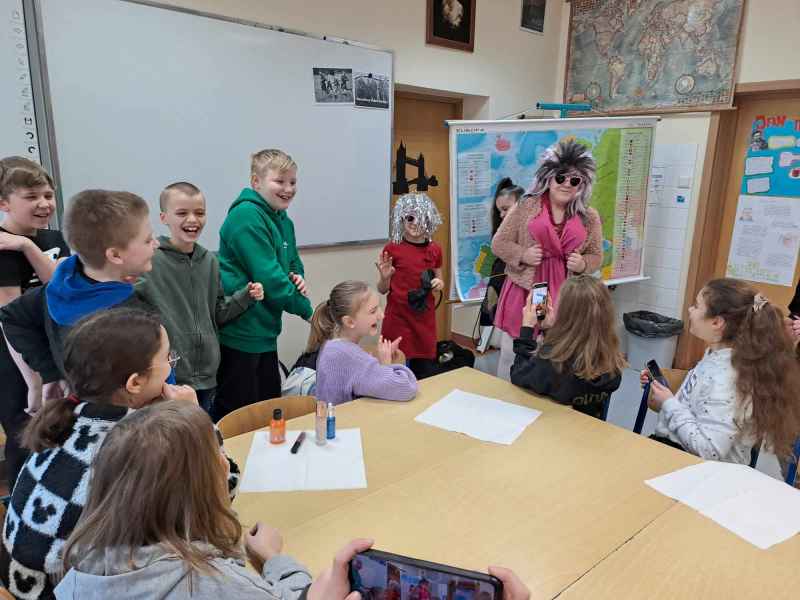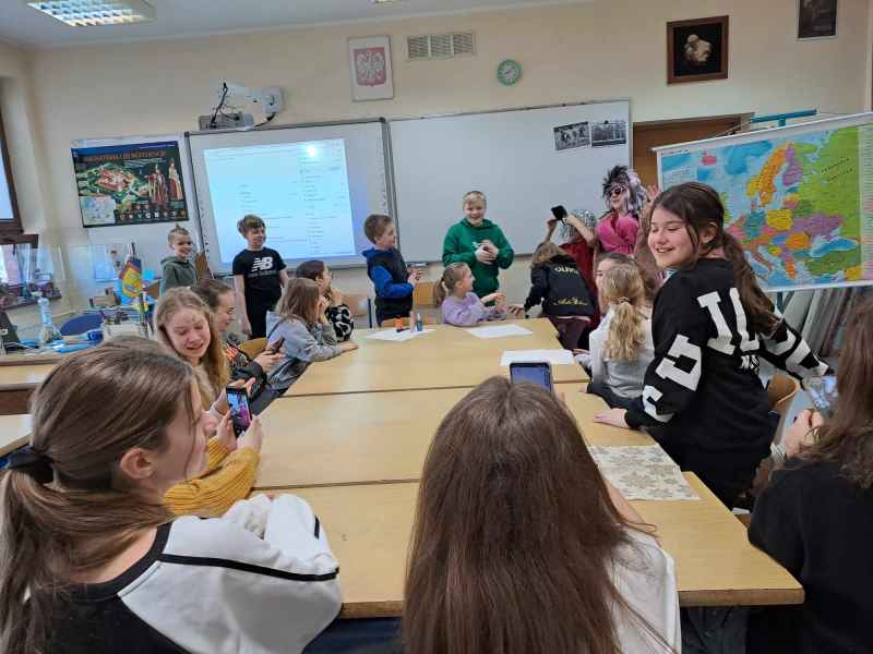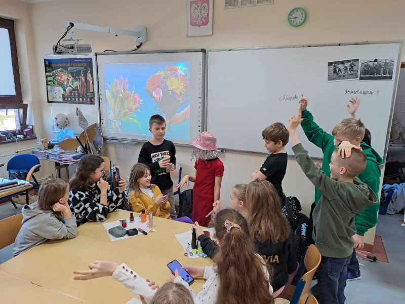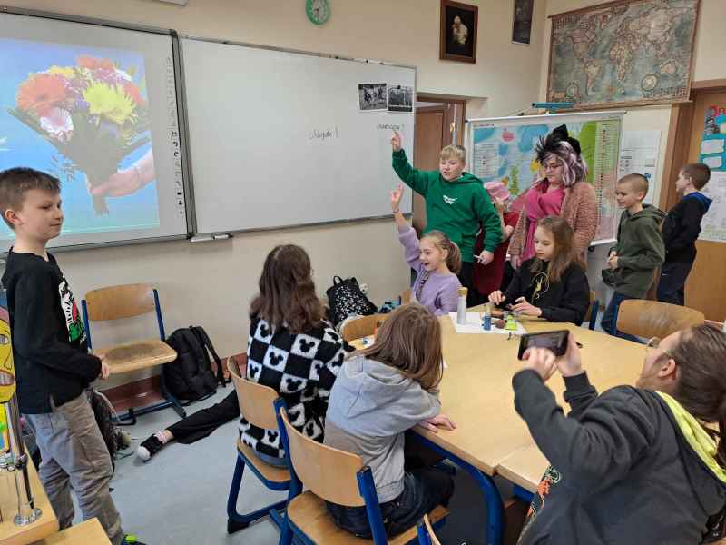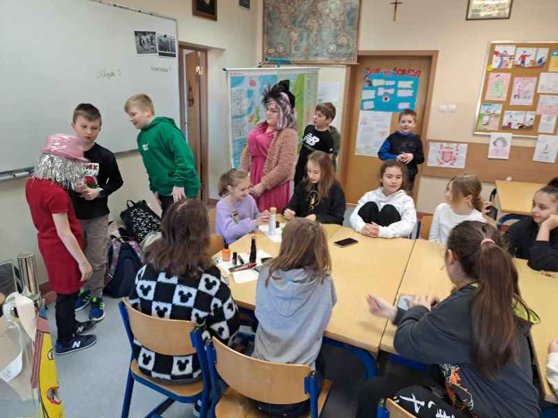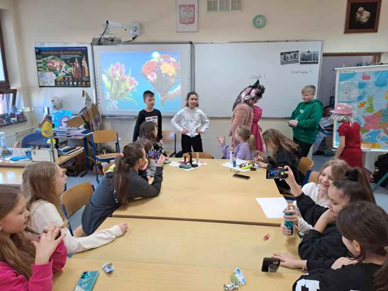 W klasie 4 c uczniowie obchodzili DZIEŃ KOBIET na wesoło, fotorelacja na zdjęciach.