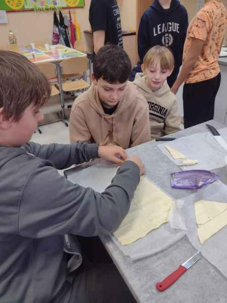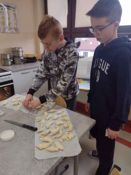 W piątek 8 marca w klasach, uczniowie obchodzili coroczne święto DZIEŃ KOBIET. Chłopcy przygotowali różne niespodzianki. W klasie 6e dziewczyny oprócz kwiatów, otrzymały słodki upominek. Chłopcy pod okiem rodziców przygotowali i upiekli rogaliki,